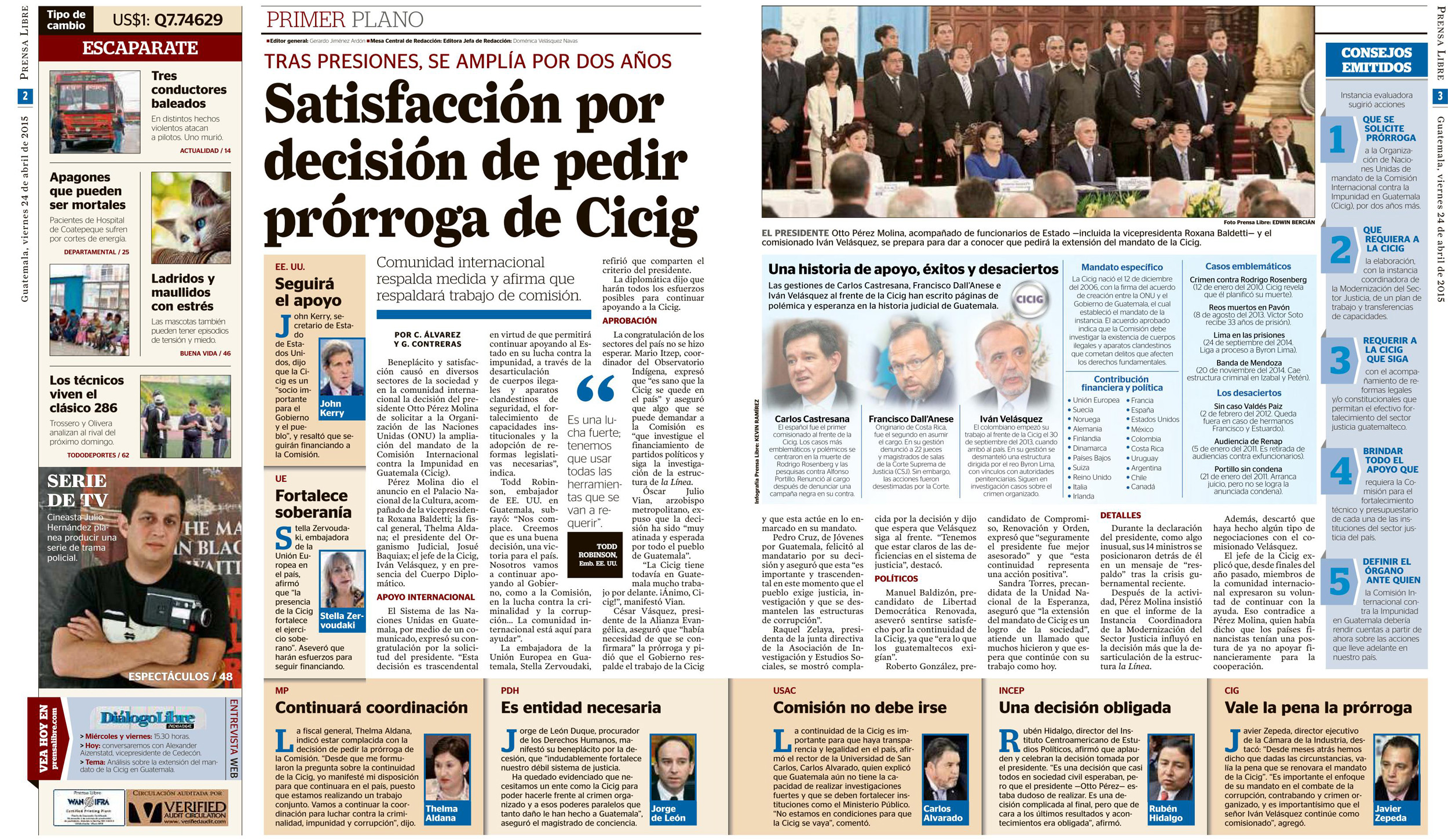 - Gobierno solicitará prórroga de la CICIG (Portada)