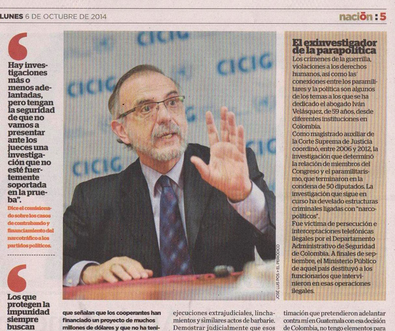 Guatemala, octubre 7 de 2014. El Comisionado Iván Velásquez Gómez fue entrevistado recientemente por El Periódico