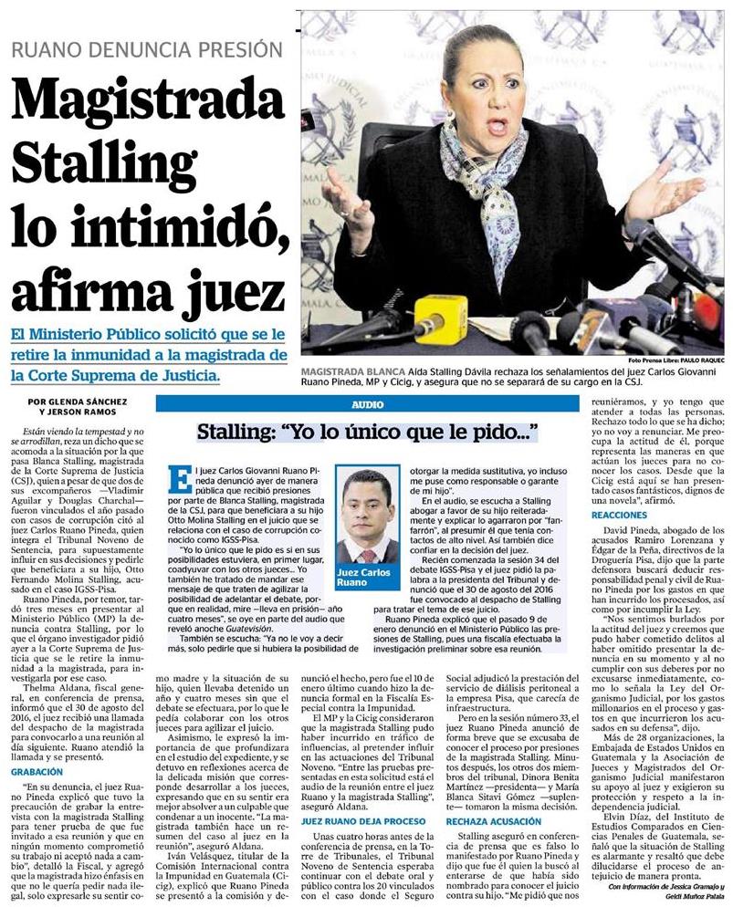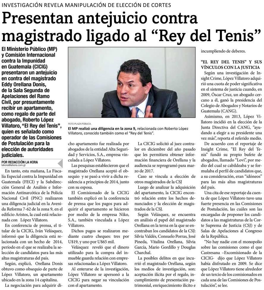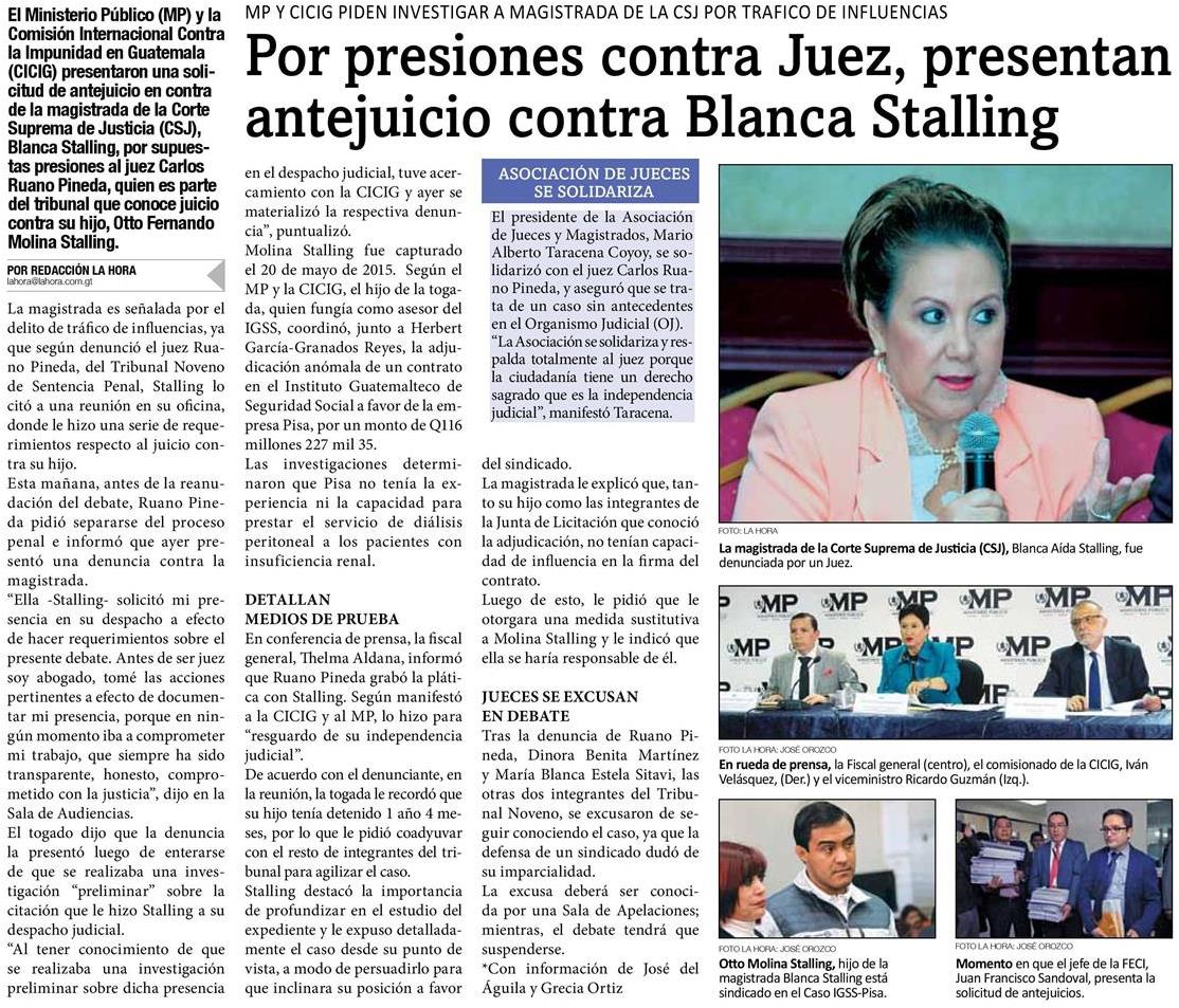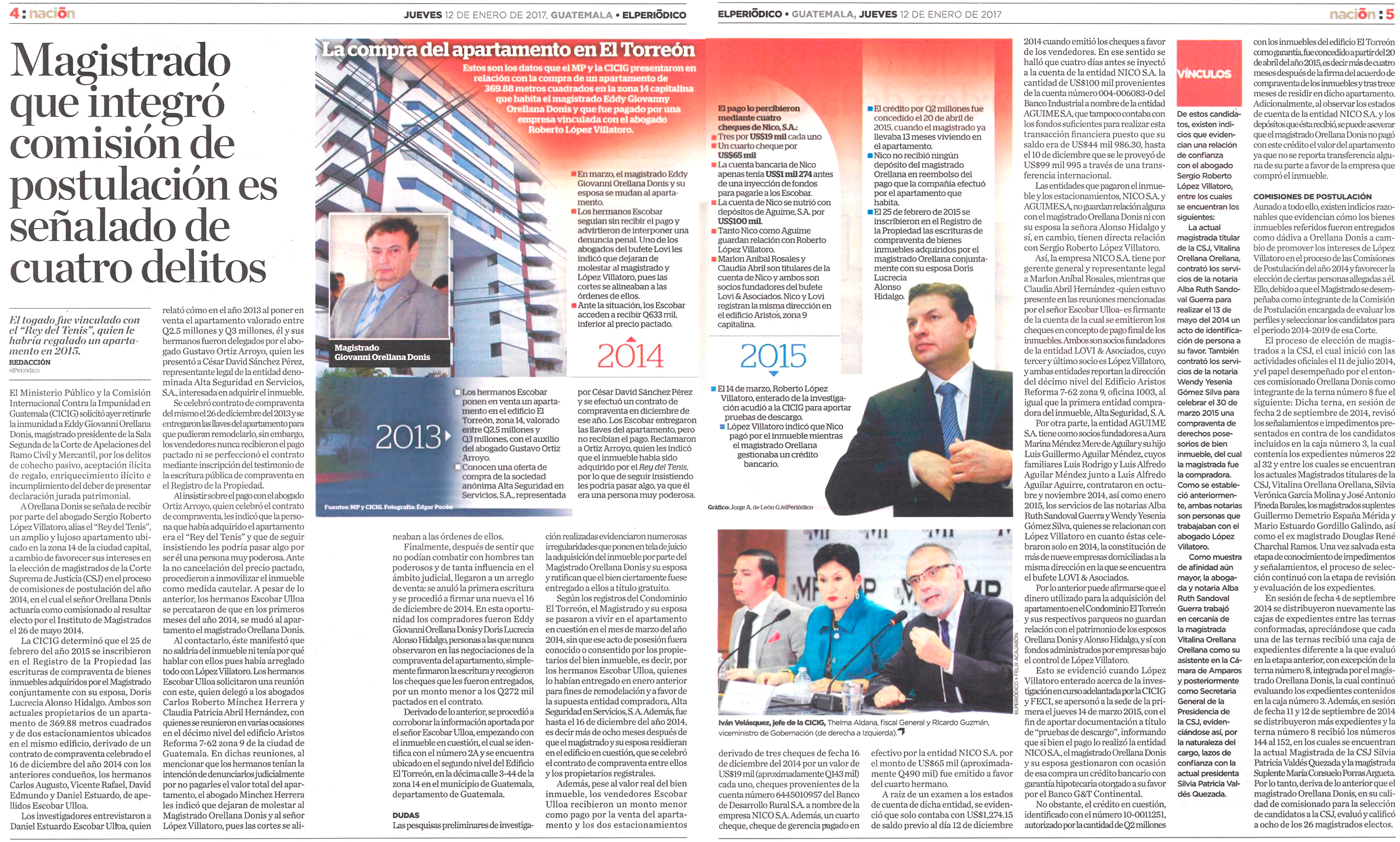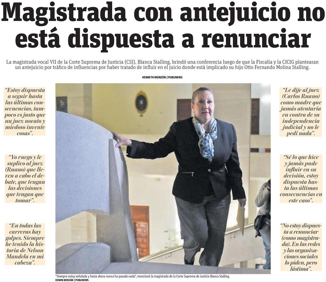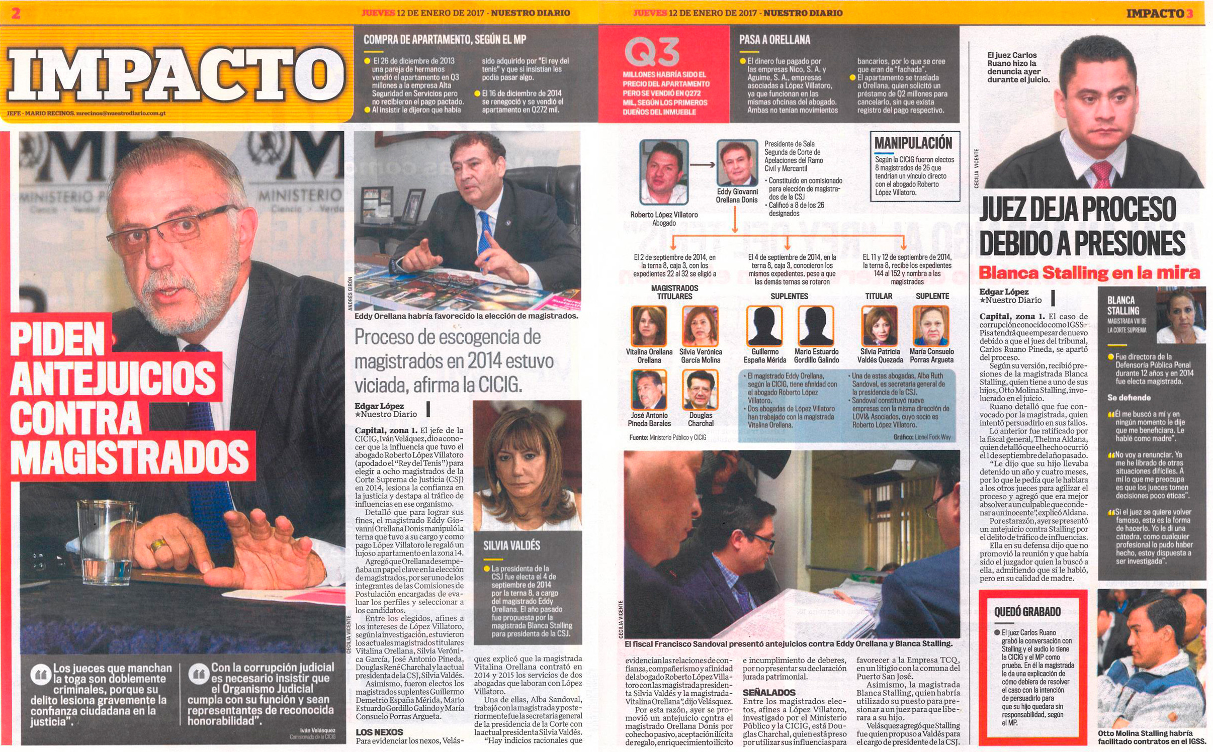 Guatemala, enero 12 de 2017. Los medios de comunicación resaltaron la presentación de solicitudes de antejuicio contra los magistrados Blanca Aída Stalling Dávila y Eddy Giovanni Orellana Donis, por actuaciones irregulares en los cargos que ostentan en el Organismo Judicial. (Se publica con fines informativos).