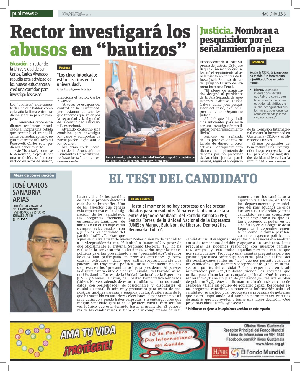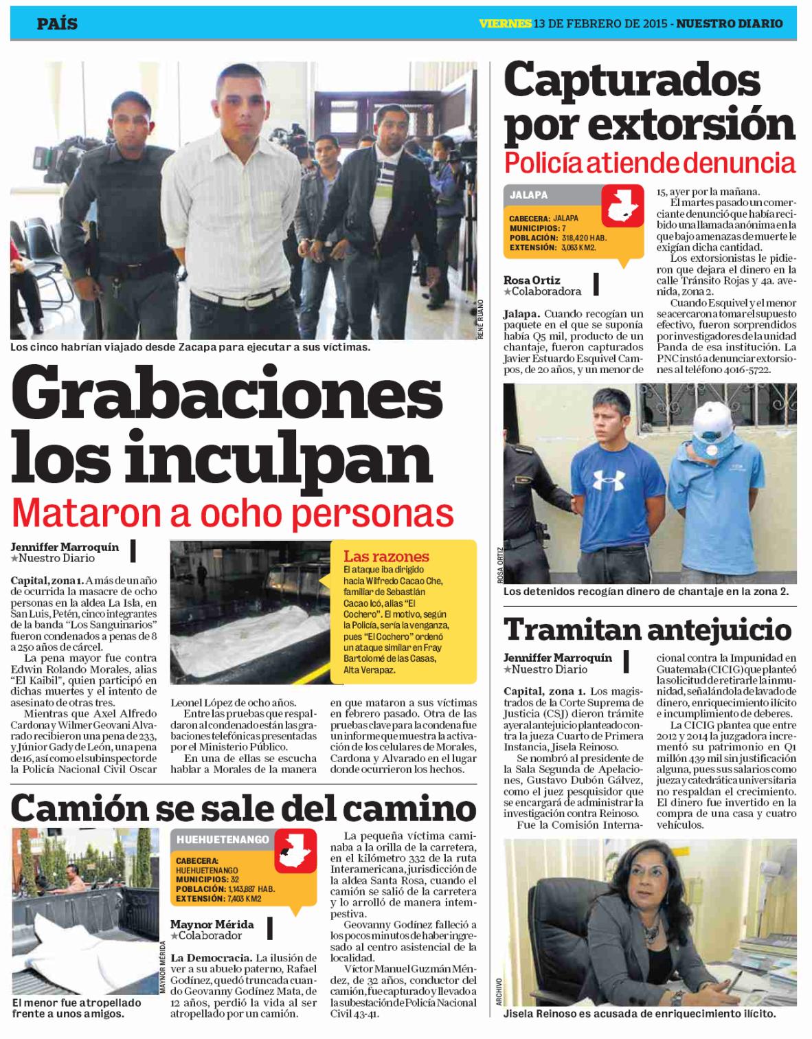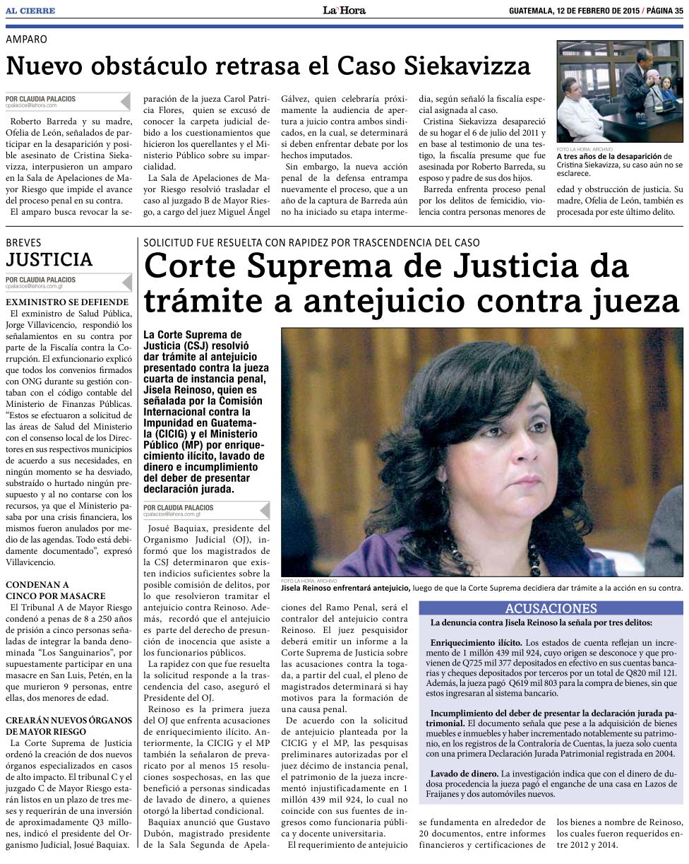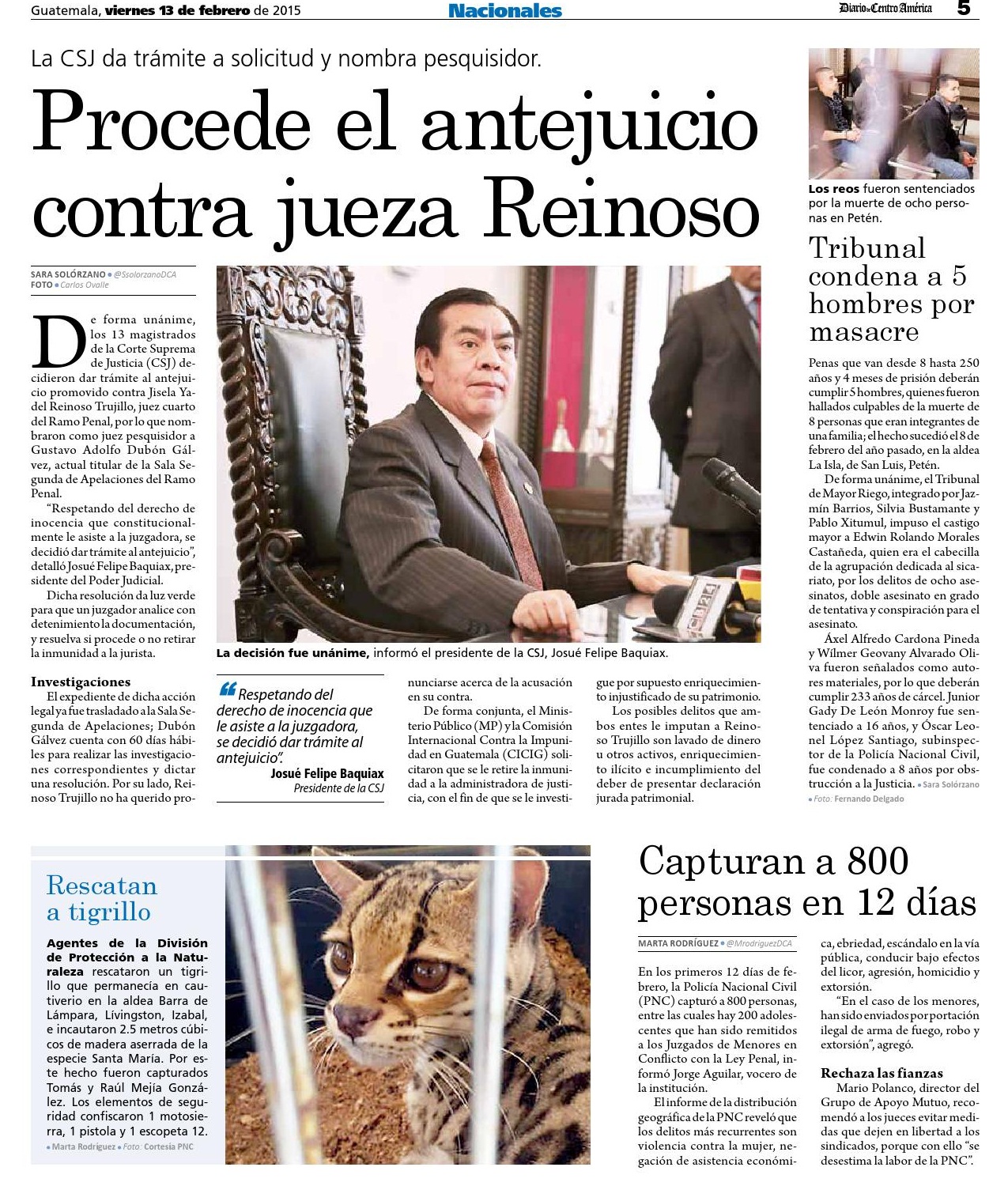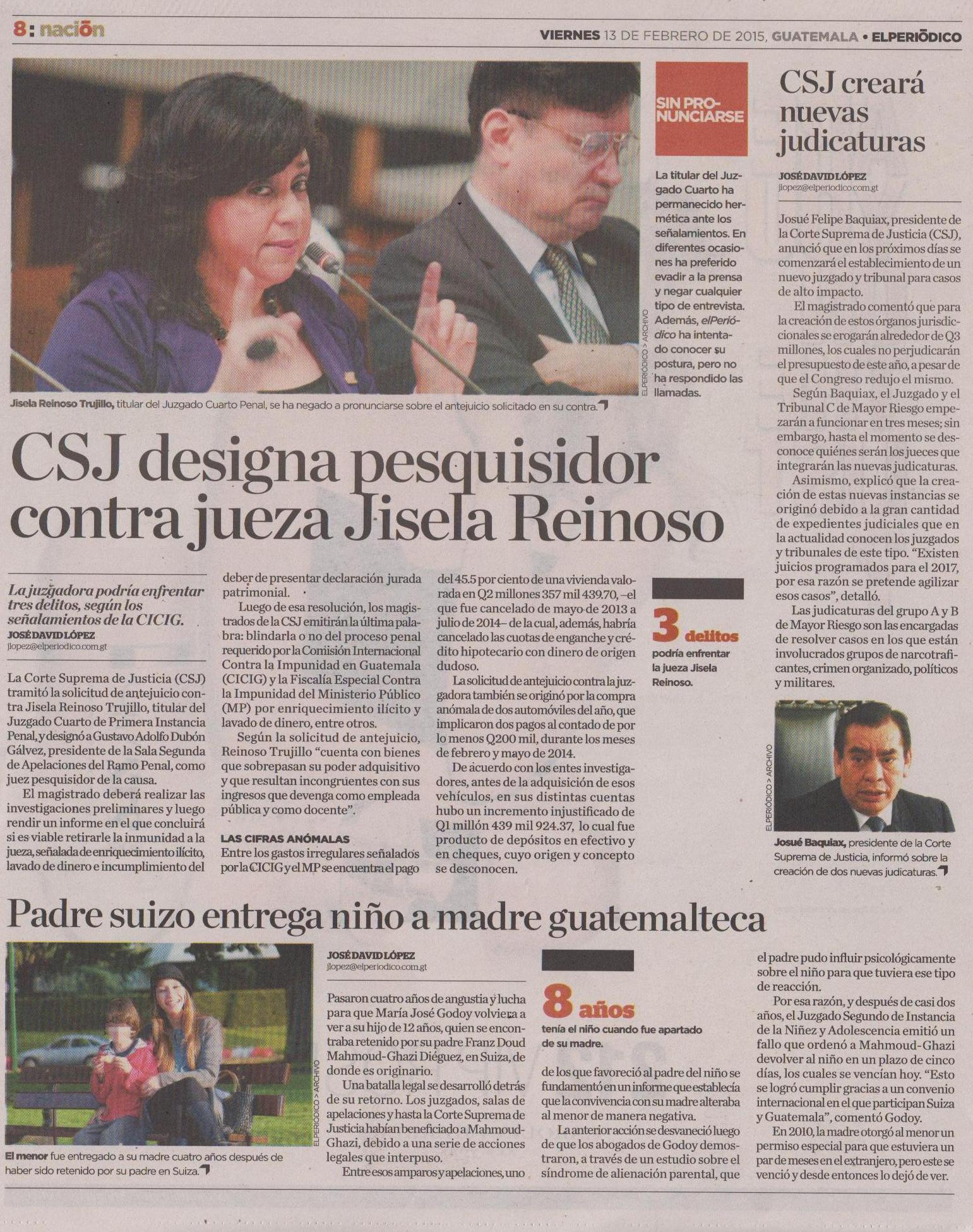 Guatemala, febrero 13 de 2015. Los medios de comunicación resaltaron la noticia sobre la decisión de los magistrados de la