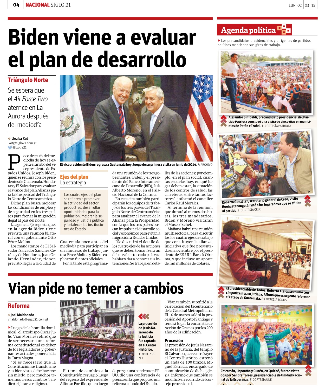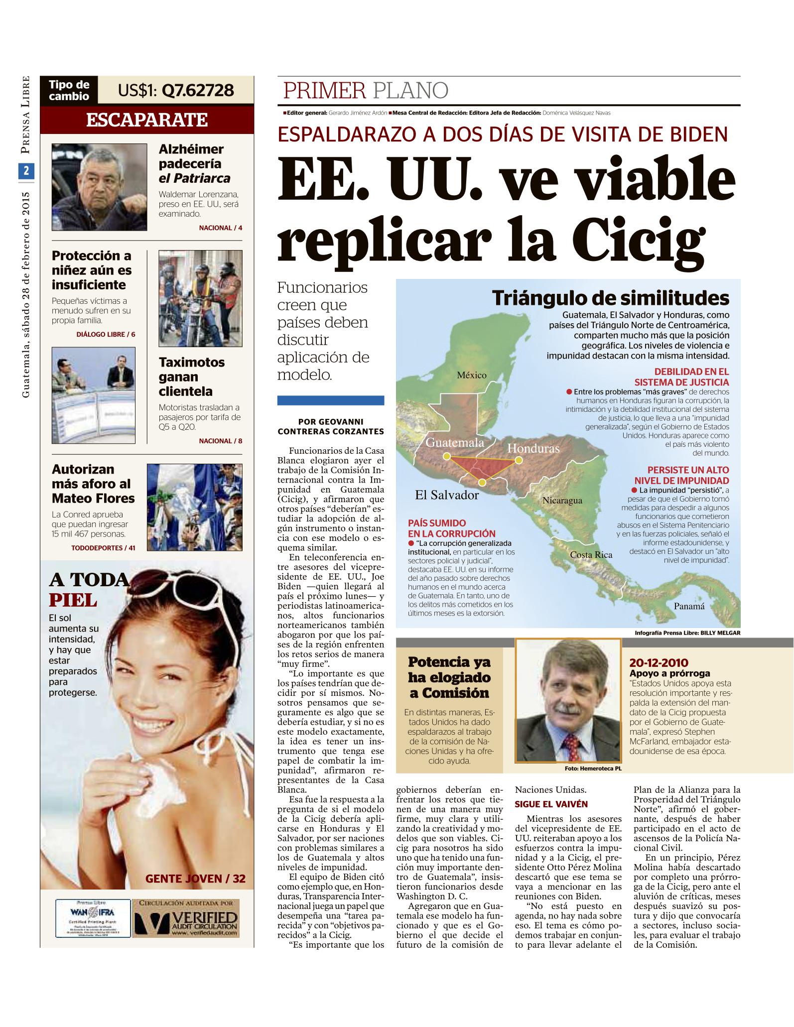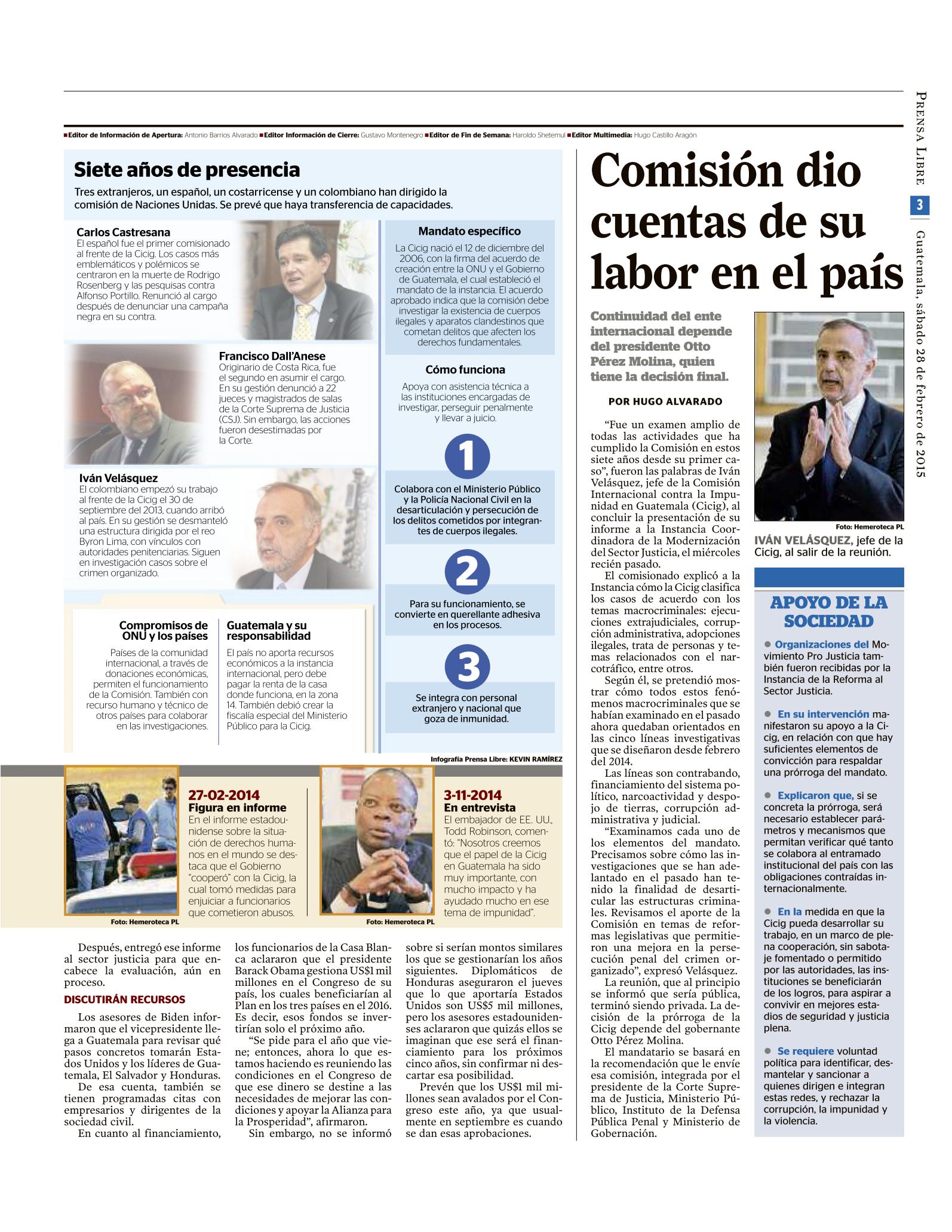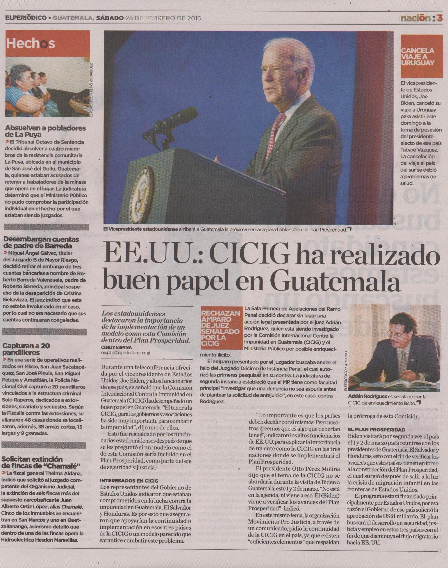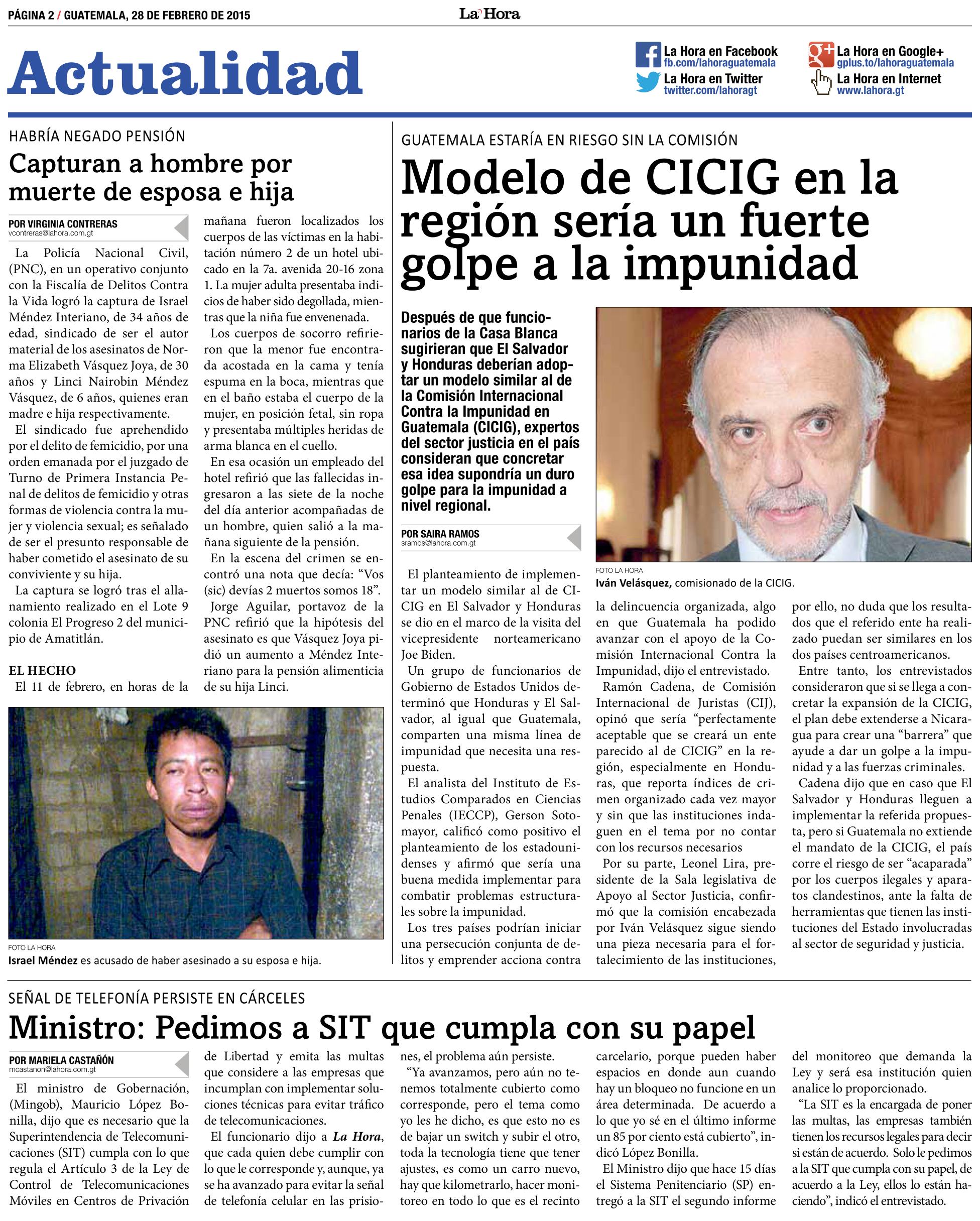 Guatemala, marzo 02 de 2015. Los medios de comunicación destacaron las noticias sobre replicar el modelo de la CICIG en la región,