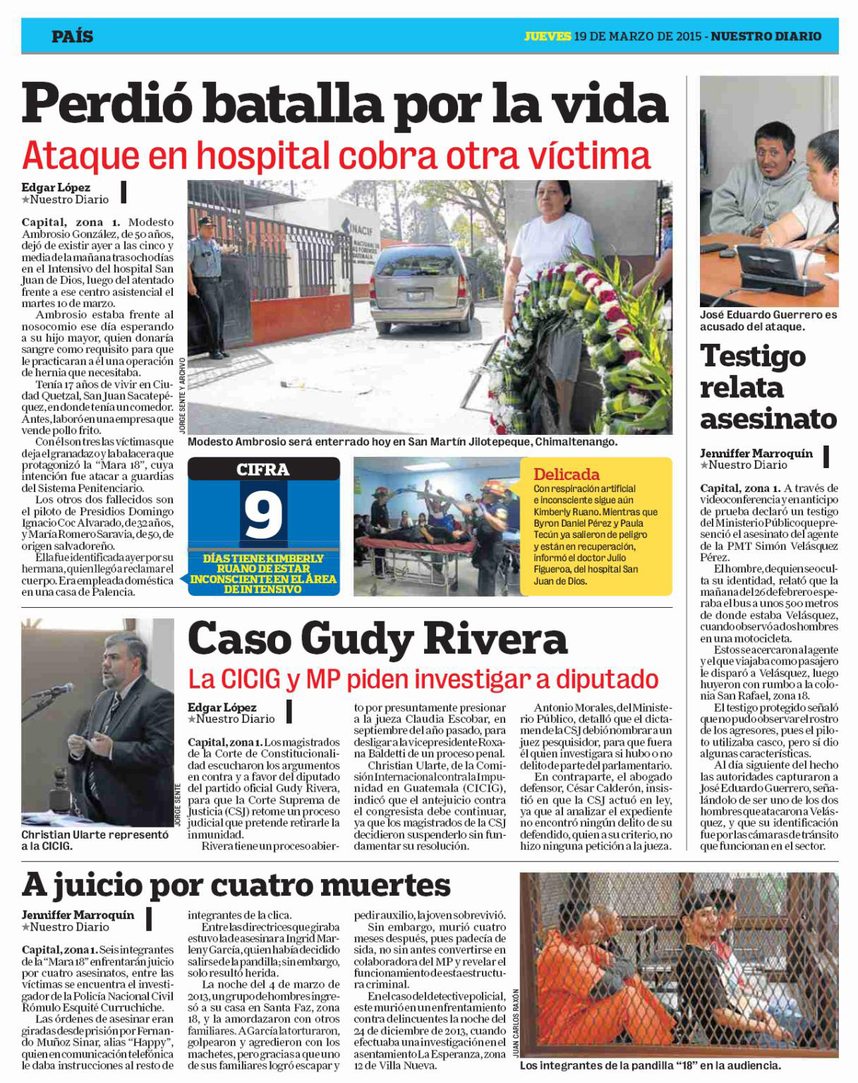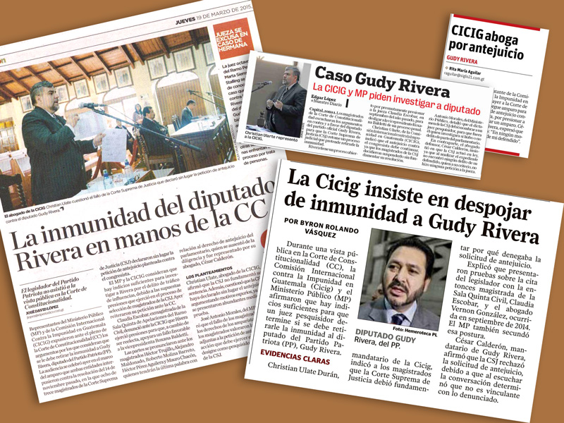 Guatemala, marzo 18 de 2015. Los medios de comunicación destacaron la noticia de la vista pública que se realizó en la Corte de Constitucionalidad, en la cual el Ministerio Público y la CICIG presentaron sus argumentos por el rechazo de la Corte Suprema de Justicia a la solicitud de antejuicio contra el diputado Gudy Rivera. (Se publica con fines informativos).