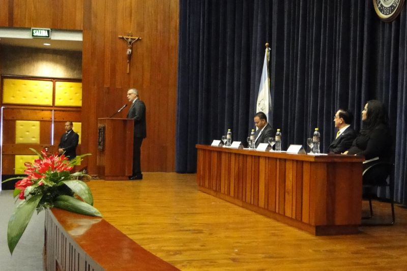 El decano de la Facultad de Ciencias Jurídicas y Sociales, Doctor Rolando Escobar Menaldo, dio la bienvenida al evento en el auditorium de la URL, y calificó de fundamental la ética en el actuar de las personas, por la crisis y la pérdida de valores de que son objeto las sociedades. Por ello dijo que la URL forma a profesionales con valores para que actúen de manera correcta en los diferentes ámbitos en que se desenvuelvan.