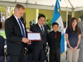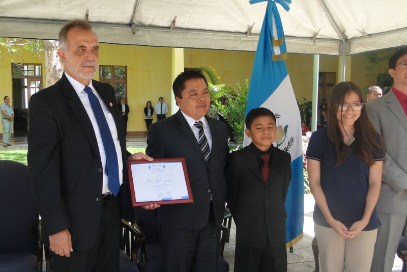 Posteriormente, el viceministro de Educación, Héctor Cantú Mejía, entregó un reconocimiento al Comisionado Velásquez Gómez como “Personaje Distinguido” por sus acciones ejemplares en la educación de valores y civismo para la niñez y juventud guatemalteca.