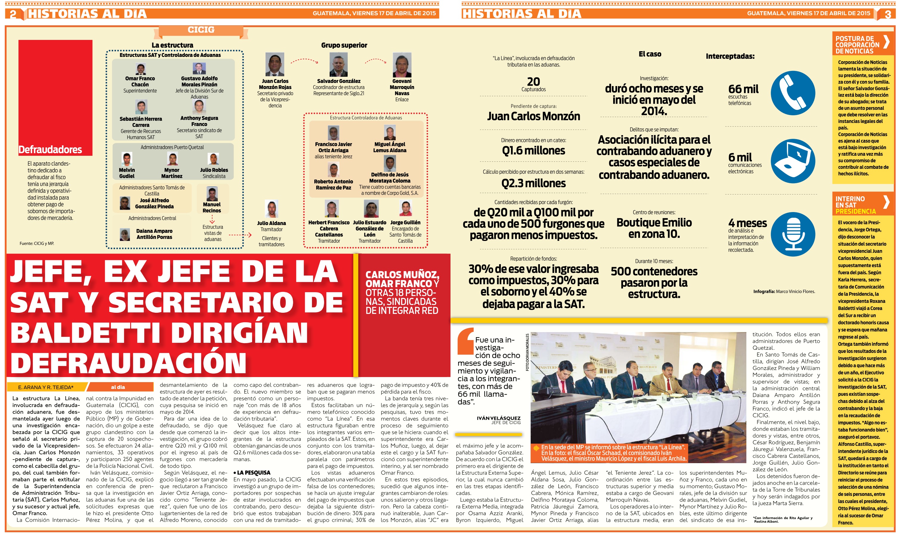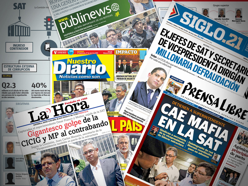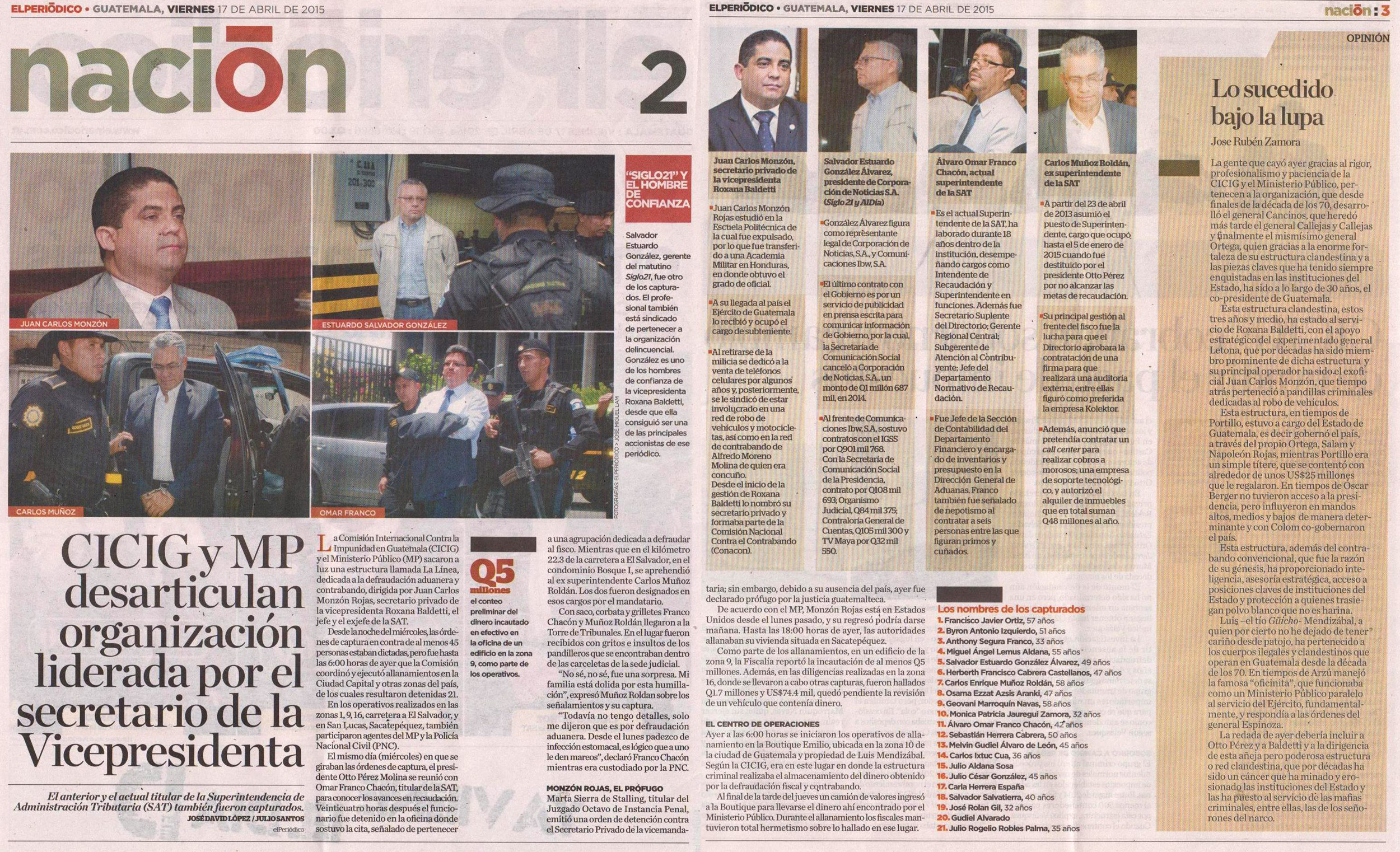 Guatemala, abril 17 de 2015. Los medios de comunicación resaltaron la noticia sobre la desarticulación
