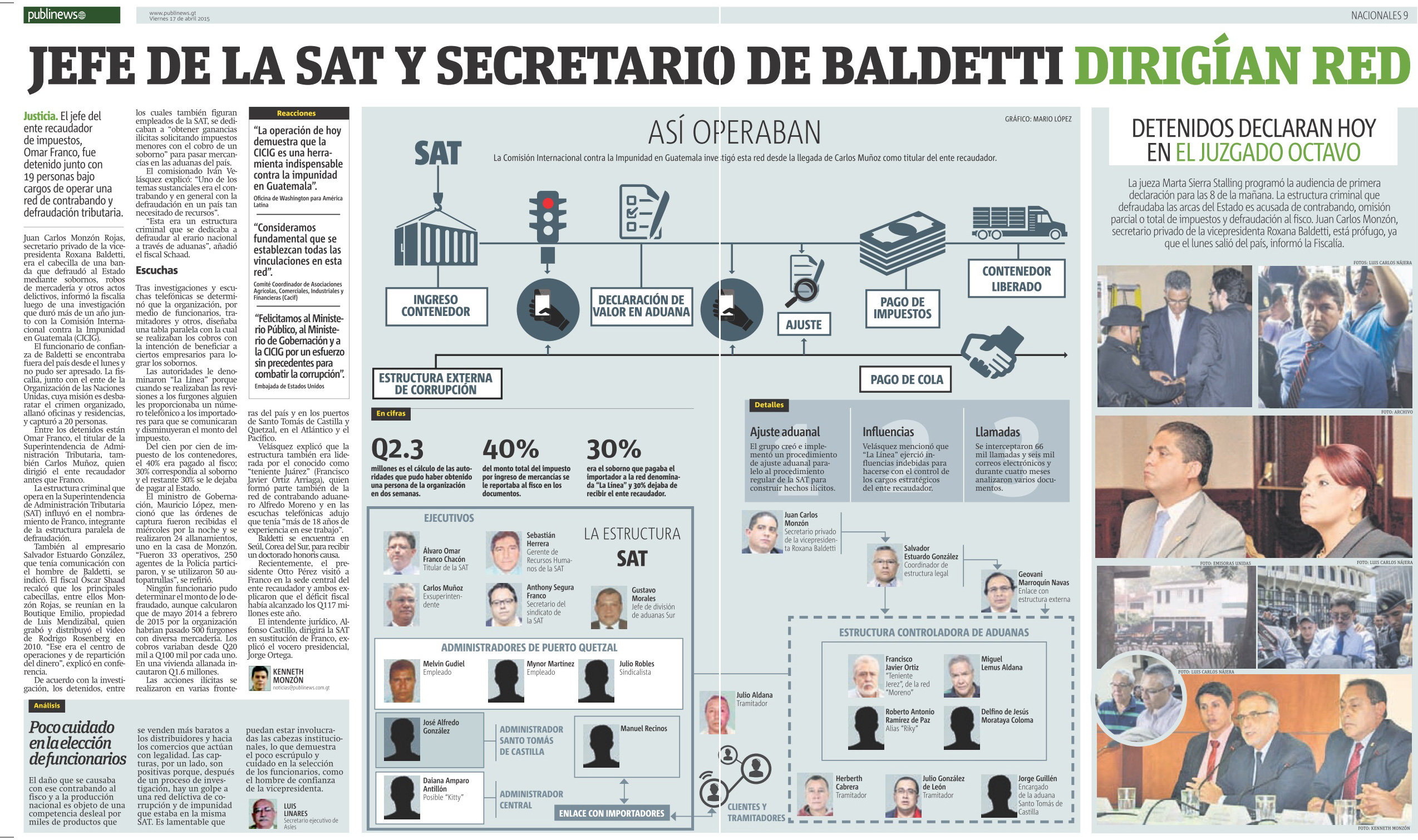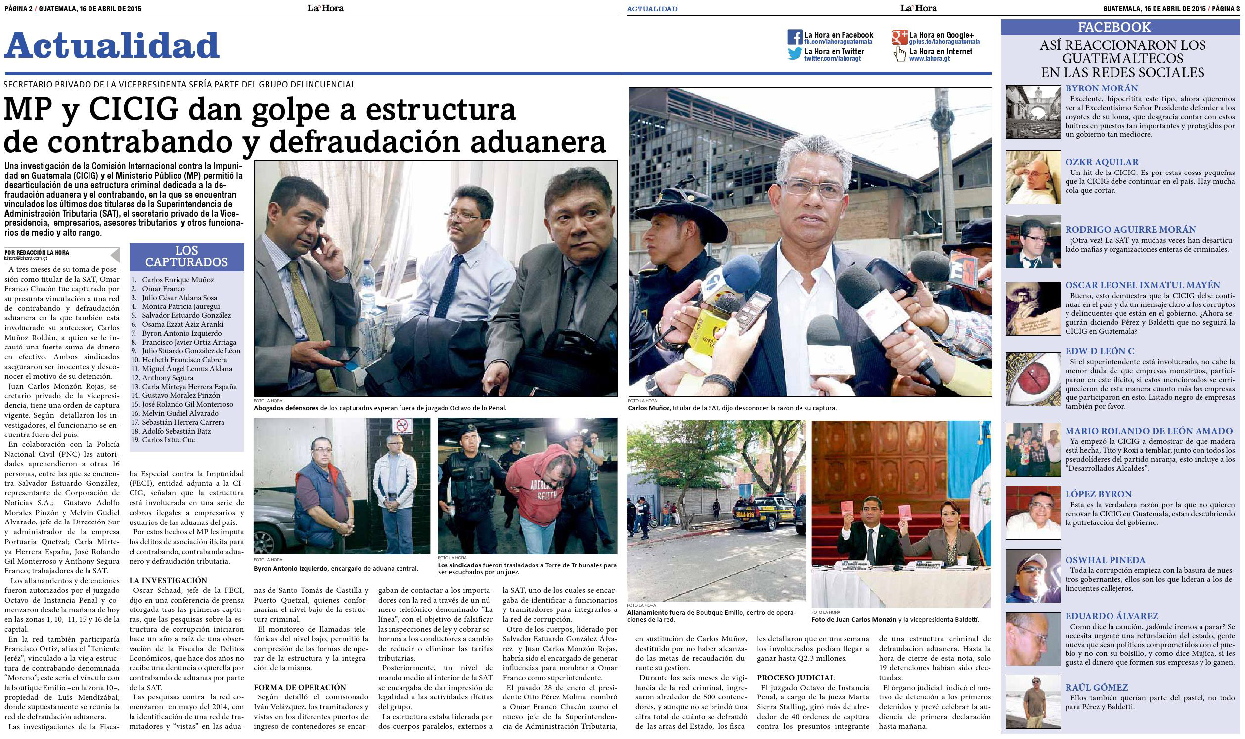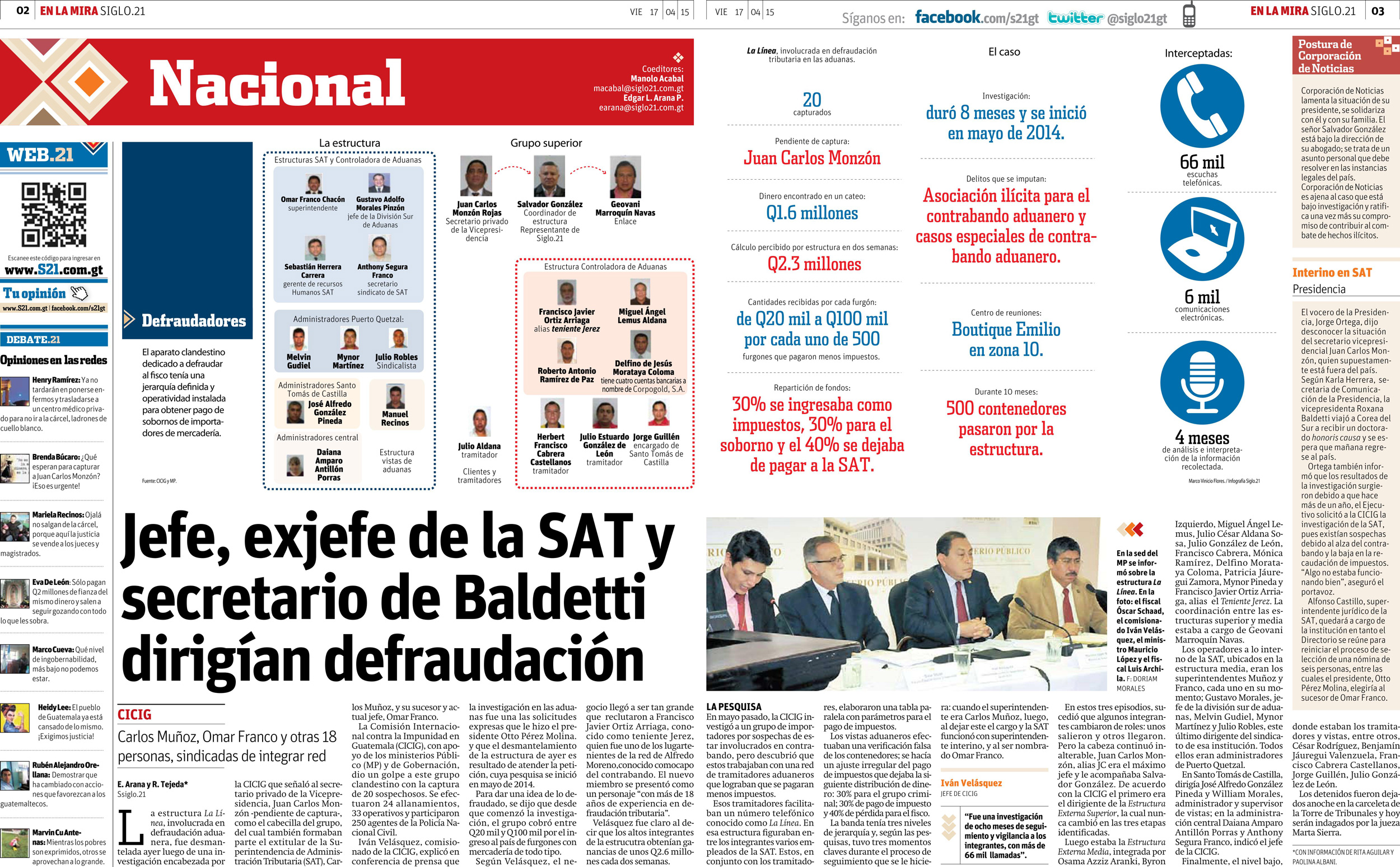 Guatemala, abril 17 de 2015. Los medios de comunicación resaltaron la noticia sobre la desarticulación