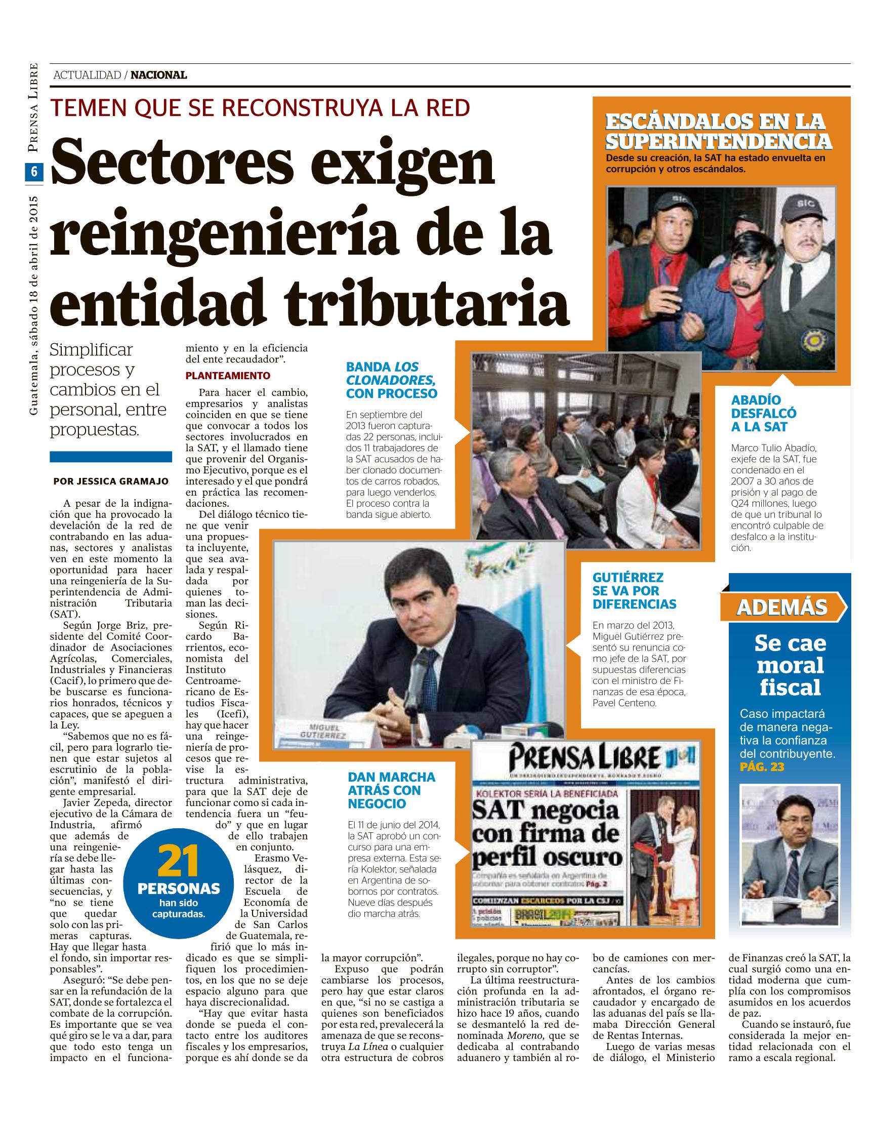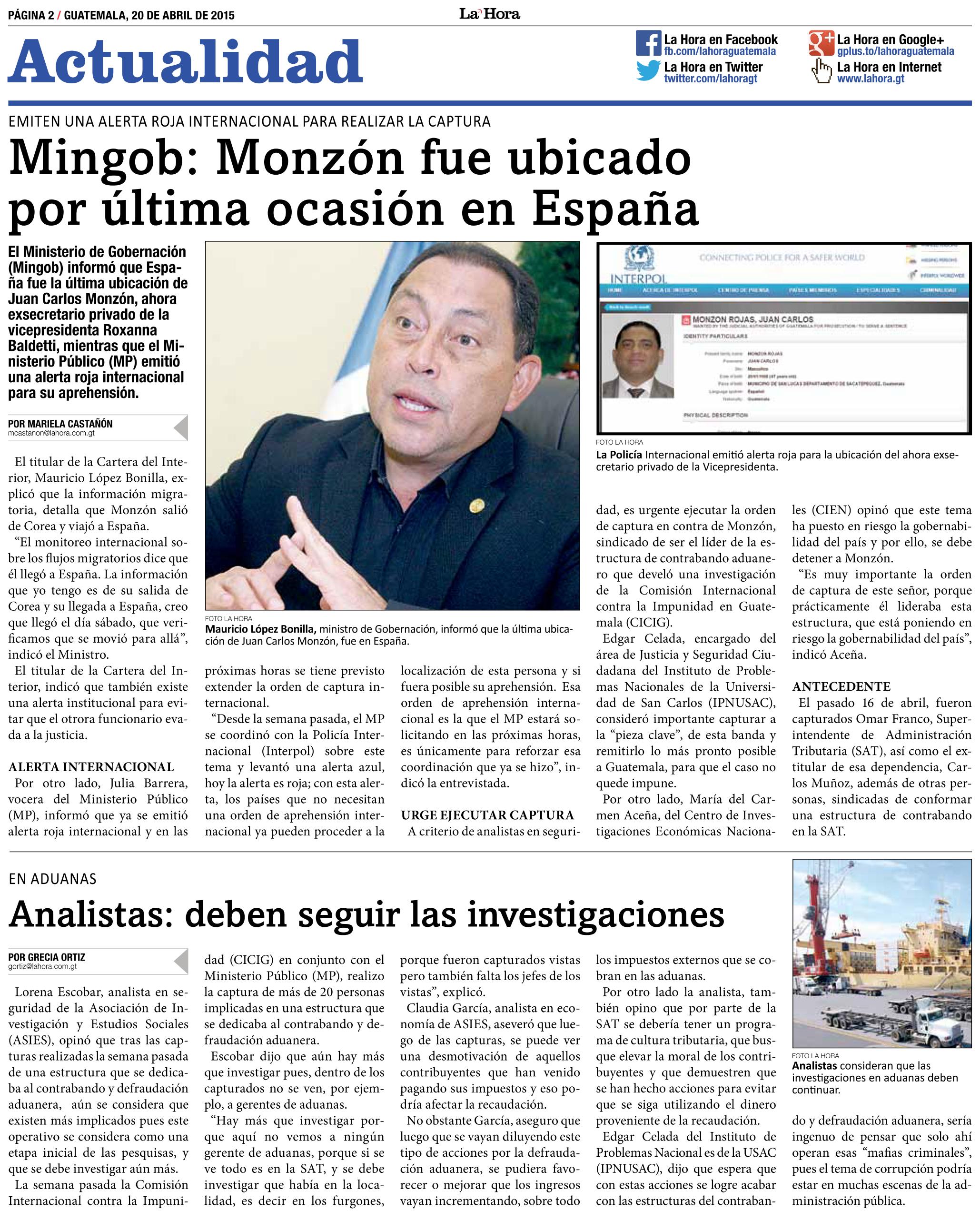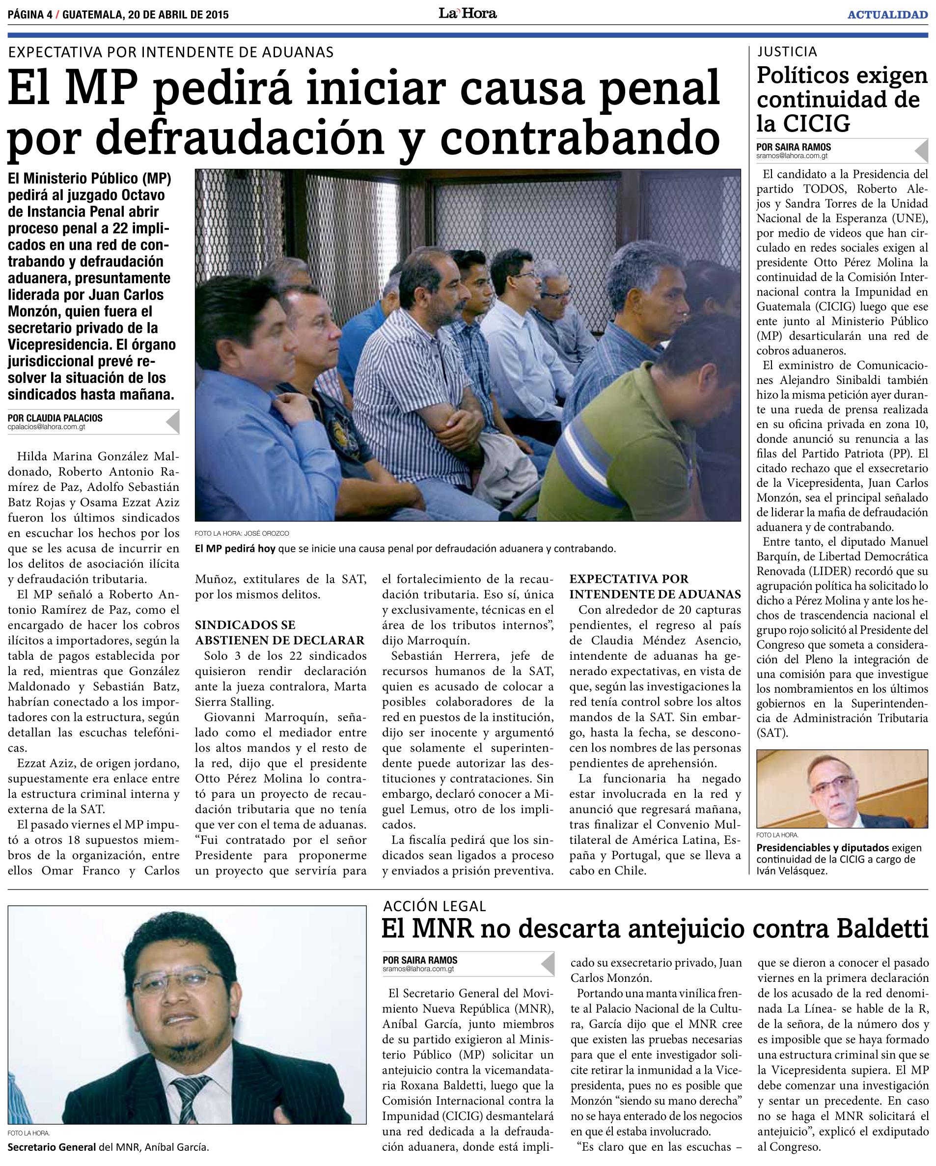 Guatemala, abril 20 de 2015. Los medios de comunicación continuaron con el seguimiento