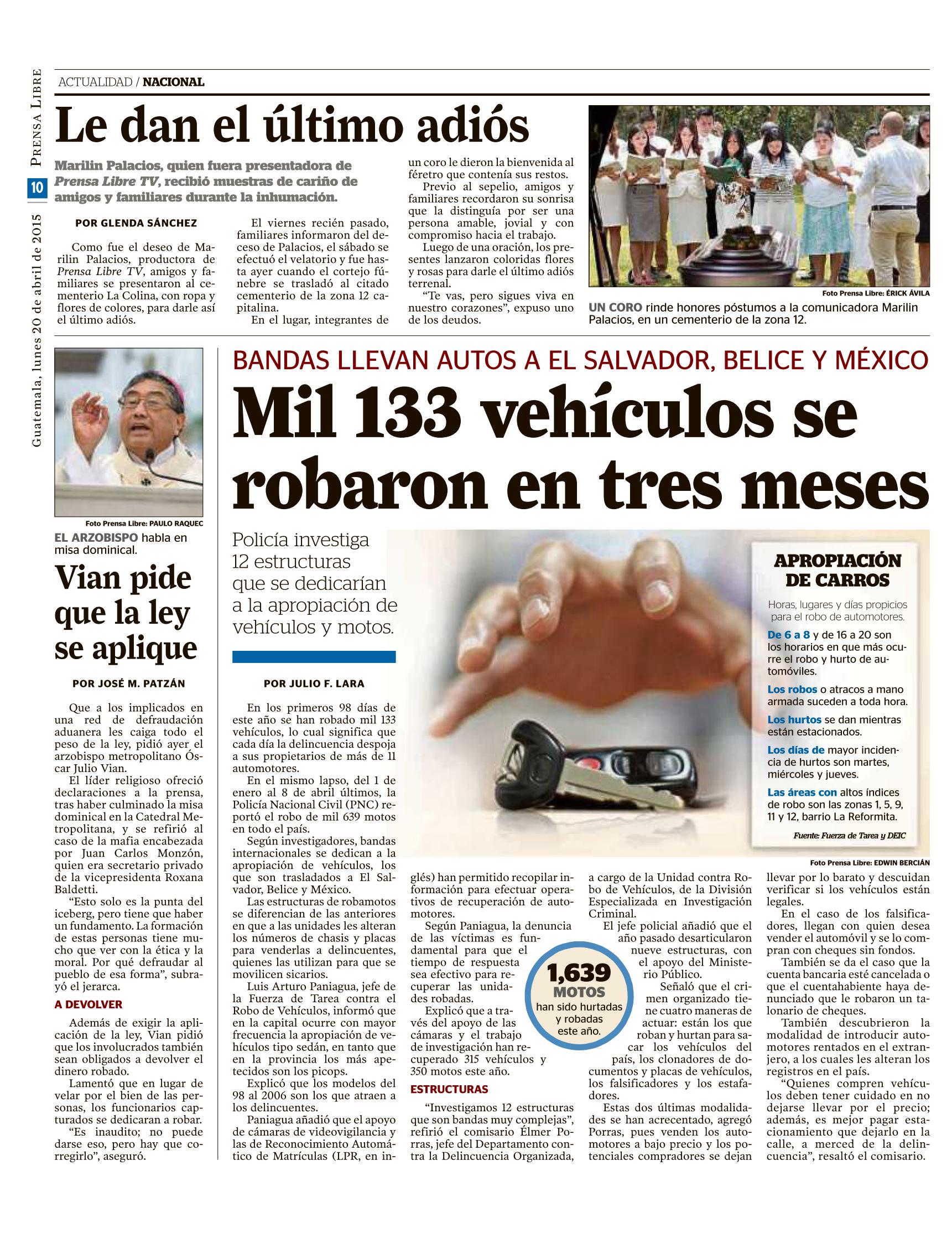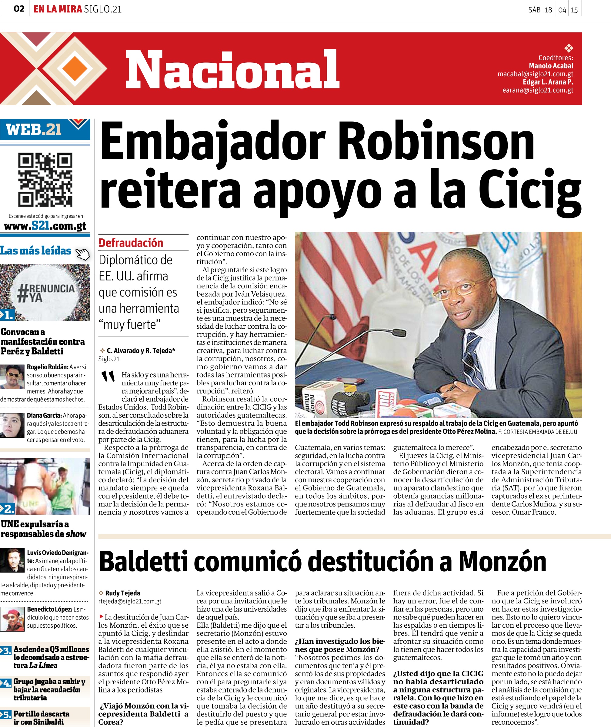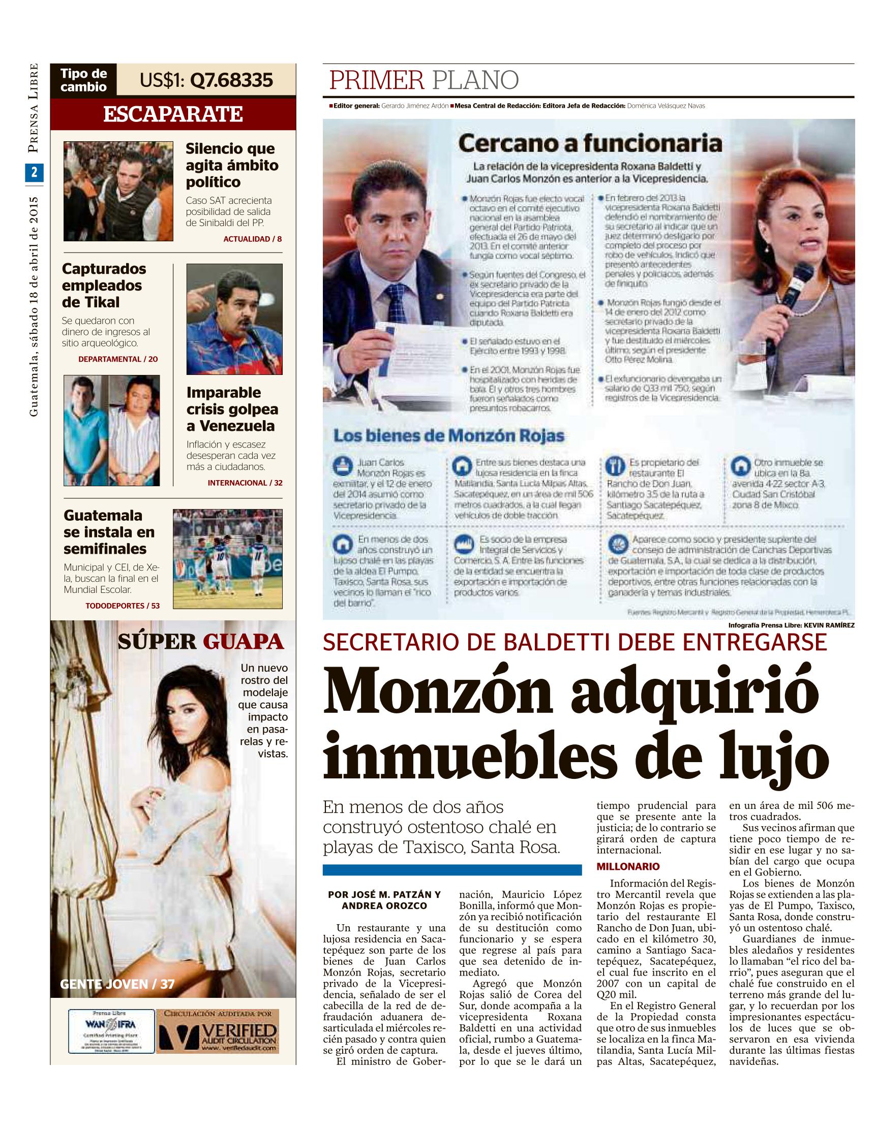 Guatemala, abril 20 de 2015. Los medios de comunicación continuaron con el seguimiento