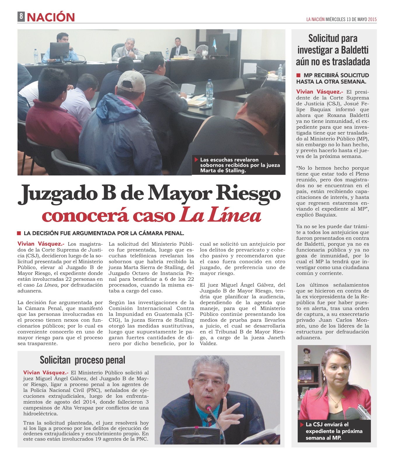 Guatemala, mayo 13 de 2015. El proceso del caso La Línea fue trasladado al Juzgado de Mayor