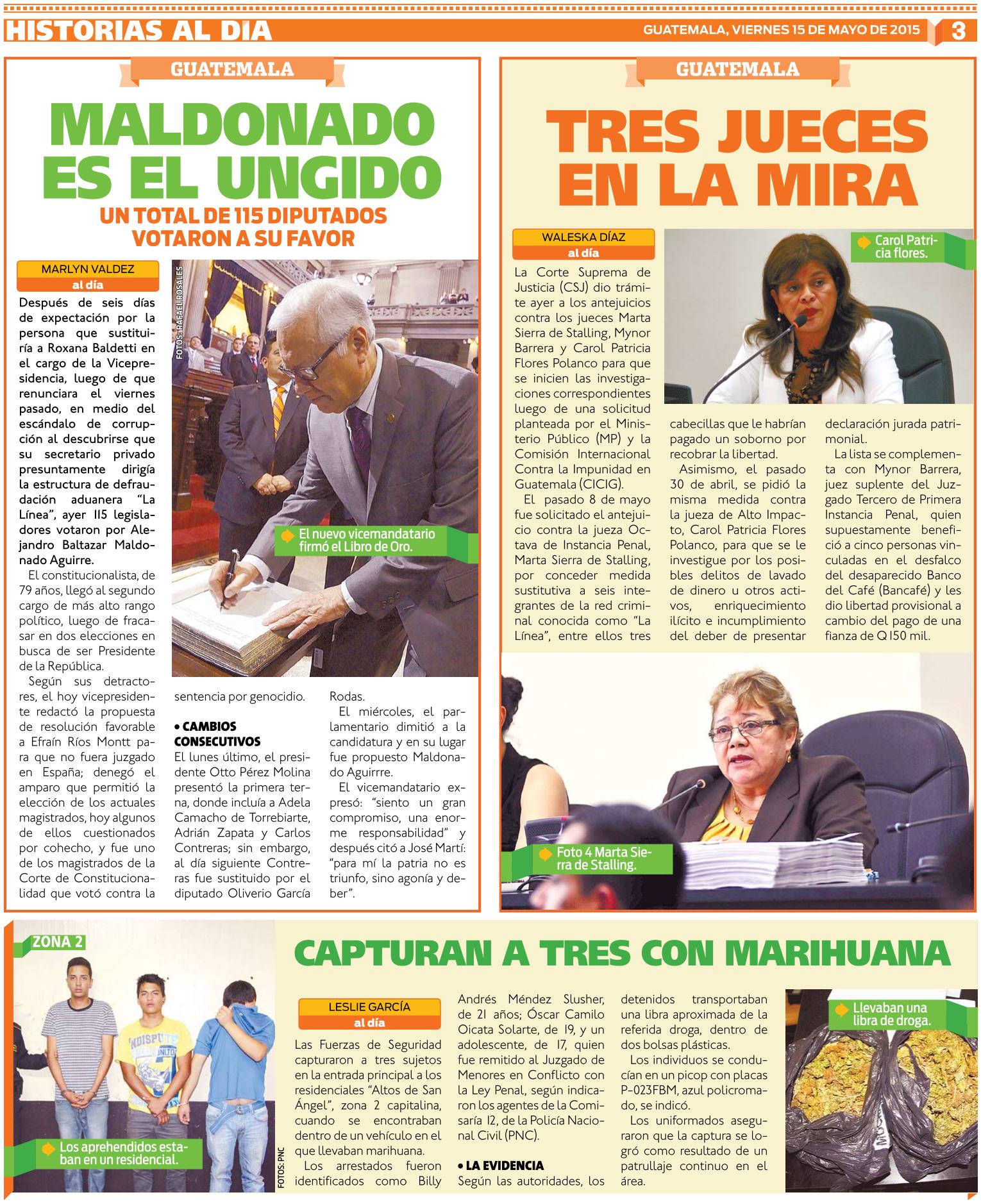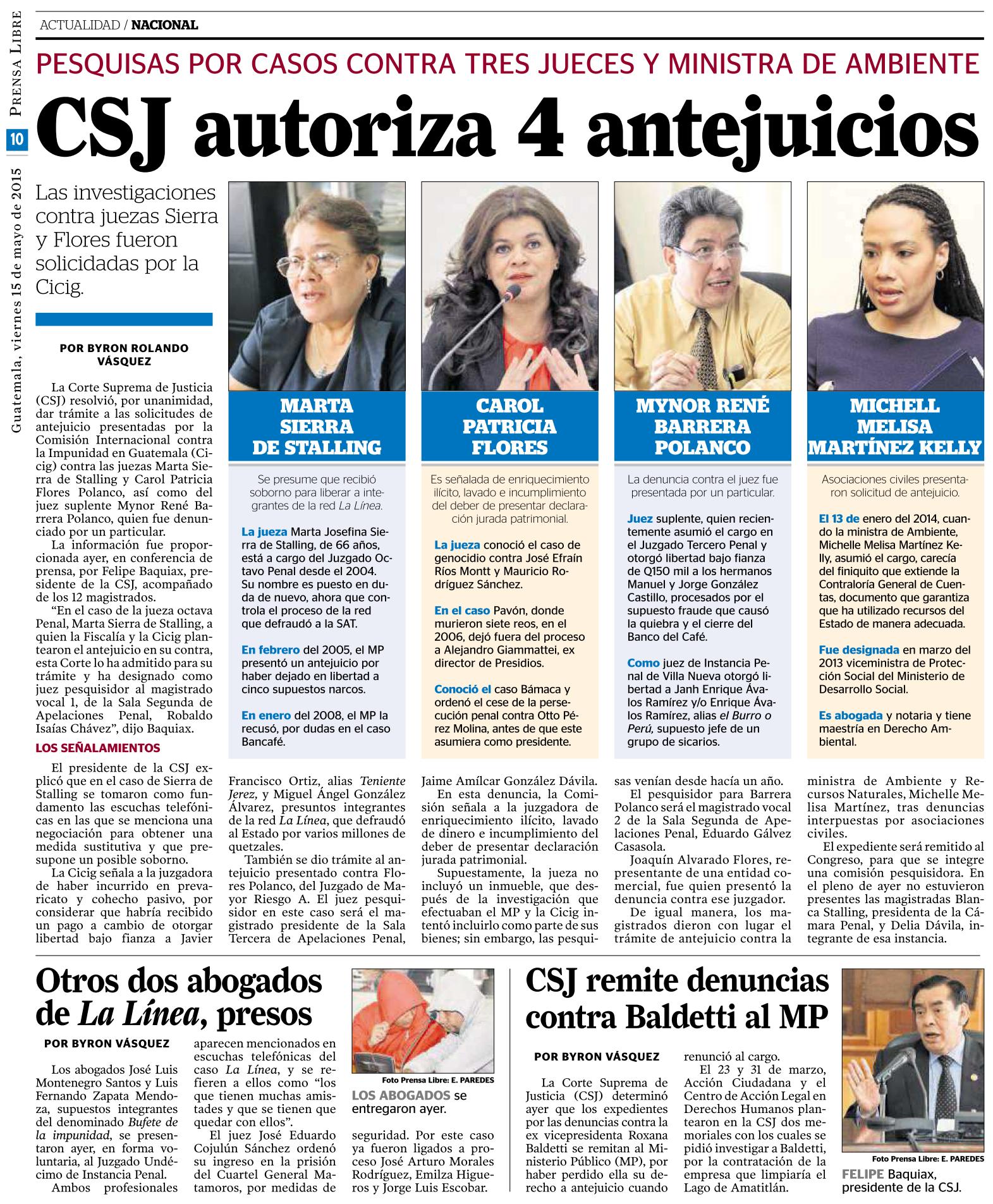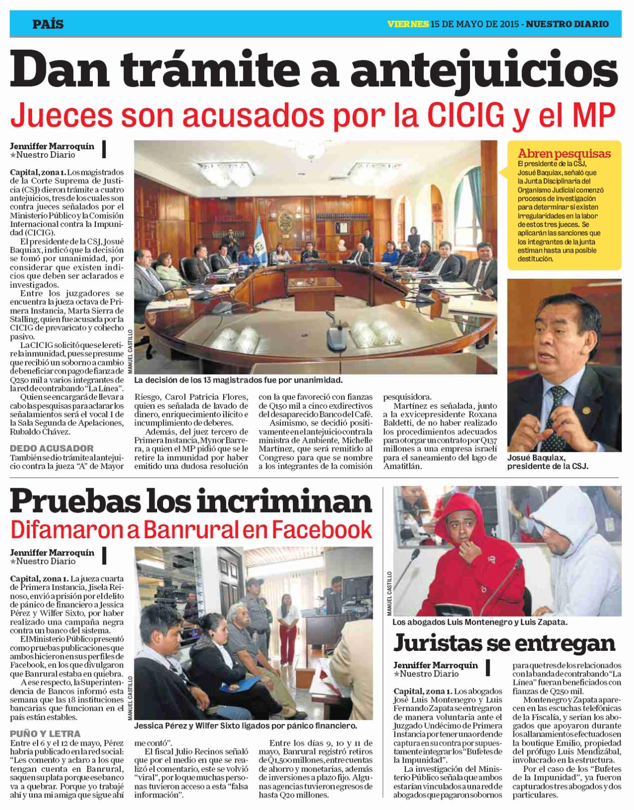 Guatemala, mayo 15 de 2015. Los medios de comunicación resaltaron la noticia de la resolución de la Corte