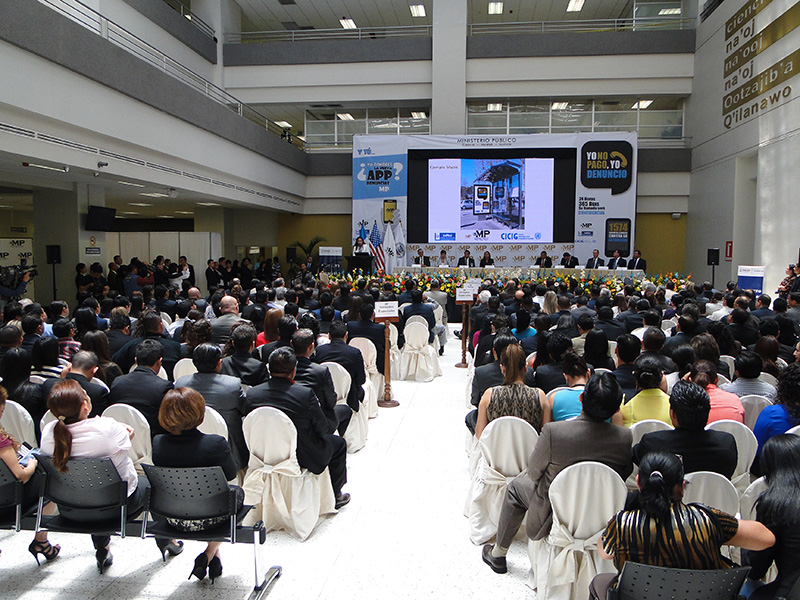 Guatemala, julio 03 de 2015. Con el apoyo de la CICIG, empresas de telefonía y otras instituciones, el día de hoy el Ministerio Público (MP) presentó el Plan Nacional contra las extorsiones e inauguró la Fiscalía contra el delito de extorsión.