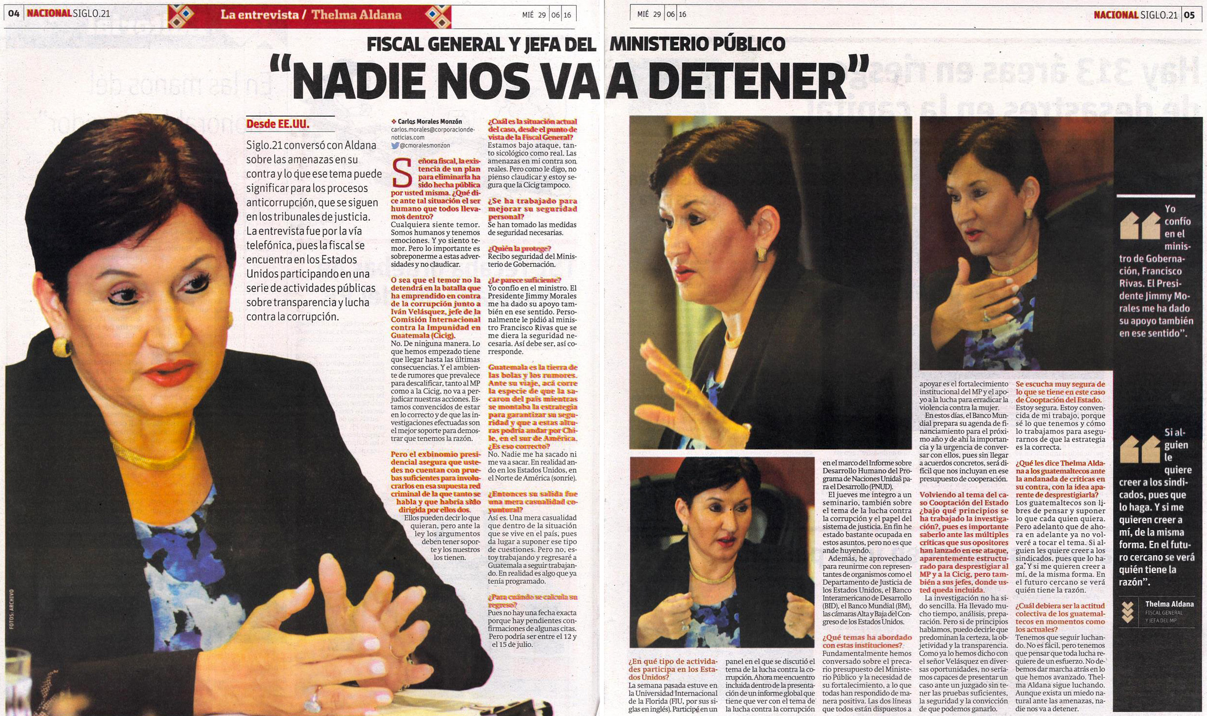 Siglo 21 entrevista a Thelma Aldana: "Nadie nos va a detener" |