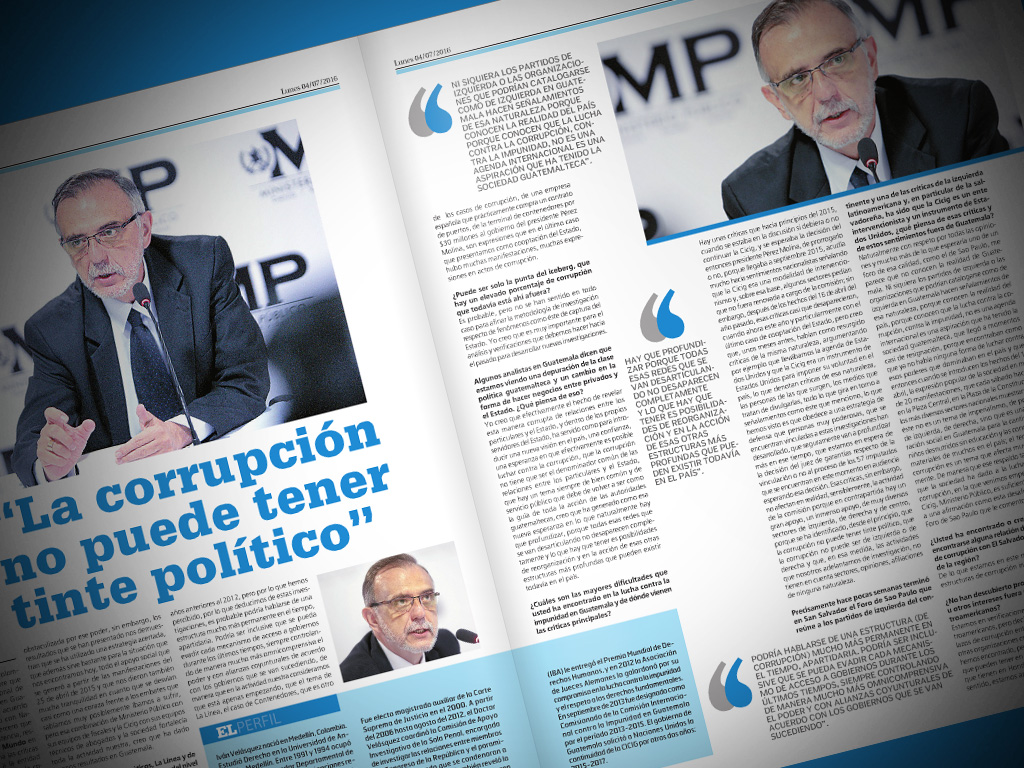 Hay unas críticas que hacia principios del 2015, cuando se estaba en la discusión si debiera o no continuar la Cicig, y se esperaba la decisión del entonces presidente Pérez Molina, de prorrogarlo o no, porque llegaba a septiembre 2015, acudía mucho hacia sentimientos nacionalistas señalando que la Cicig era una modalidad de intervencionismo y, sobre esa base, algunos sectores pedían que no fuera renovada a cargo de la comisión; sin embargo, después de los hechos del 16 de abril del año pasado, esas críticas casi que desaparecieron, cuando ahora este año y particularmente con el último caso de cooptación del Estado, pero creo que, unos meses antes, habían como resurgido críticas de la misma naturaleza, argumentando por ejemplo que llevábamos la agenda de Estados Unidos y que la Cicig era un instrumento de Estados Unidos para imponer su voluntad en el país, lo que denotan críticas de esa naturaleza, las personas de las que surgen, los medios que tratan de divulgarlas, todo lo que gira en torno a señalamientos como éste que menciono, lo que hemos visto es que obedece a una estrategia de defensa que personas muy poderosas, que se encuentran vinculadas a estas investigaciones han desarrollado, que seguramente van a profundizar más en ese tiempo, que estamos en espera de la decisión del juez de garantías respecto de la vinculación o no al proceso de los 57 imputados que se encuentran en este momento en audiencia esperando esa decisión. Esas críticas, sin embargo, no afectan en realidad, sensiblemente, la actividad de la comisión porque en contrapartida hay un gran apoyo, un inmenso apoyo, de muy diversos sectores de izquierda, de derecha y de centro, porque se ha identificado, desde el principio, que la corrupción no puede tener tinte político, que la corrupción no puede ser de izquierda o de derecha y que, en esa medida, las actividades que nosotros adelantamos de investigación, no tienen en cuenta sectores, opiniones, afiliaciones de ninguna naturaleza.