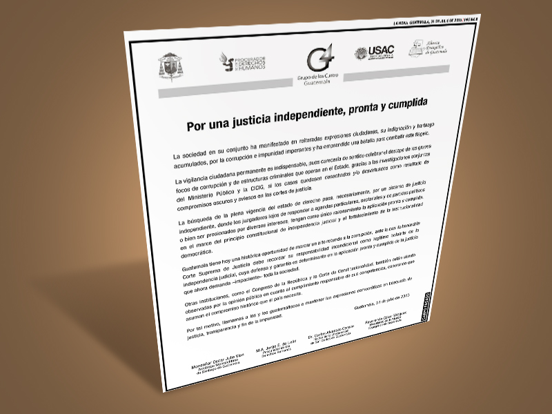 al trabajo investigativo del Ministerio Público y de la CICIG. Además instaron a los guatemaltecos a mantener