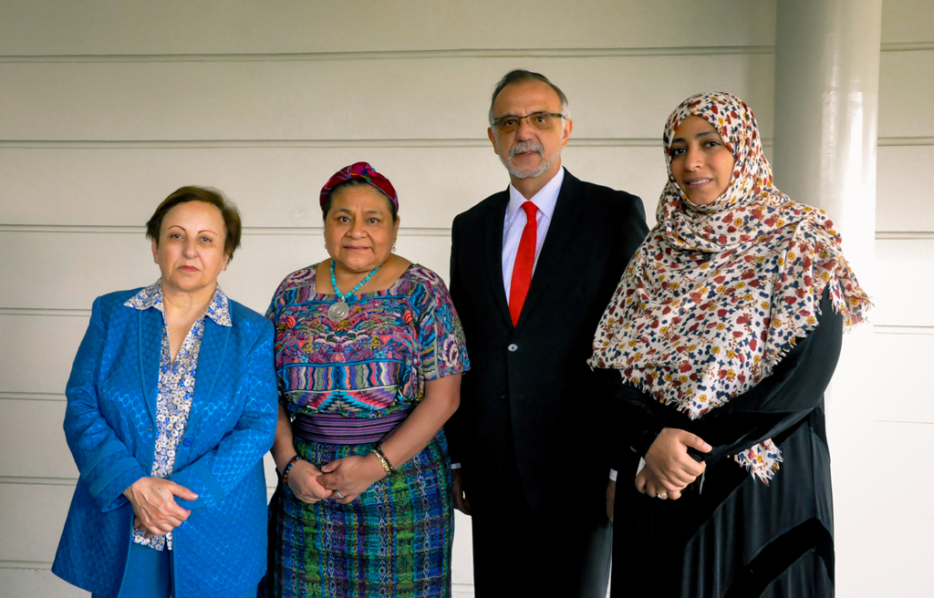 Guatemala, octubre 27 de 2017. El Comisionado Iván Velásquez Gómez se reunió hoy con Josy Williams, Shirin Ebadi, Tawakkol Karman y Rigoberta Menchú, ganadoras del Premio Nobel de la Paz, con quienes conversó sobre la labor de la CICIG, y temas relacionados con la justicia guatemalteca.