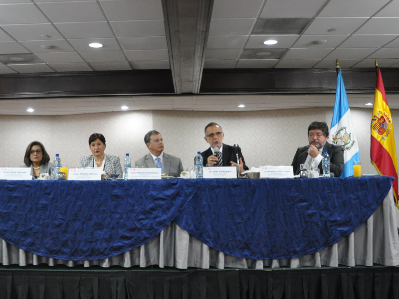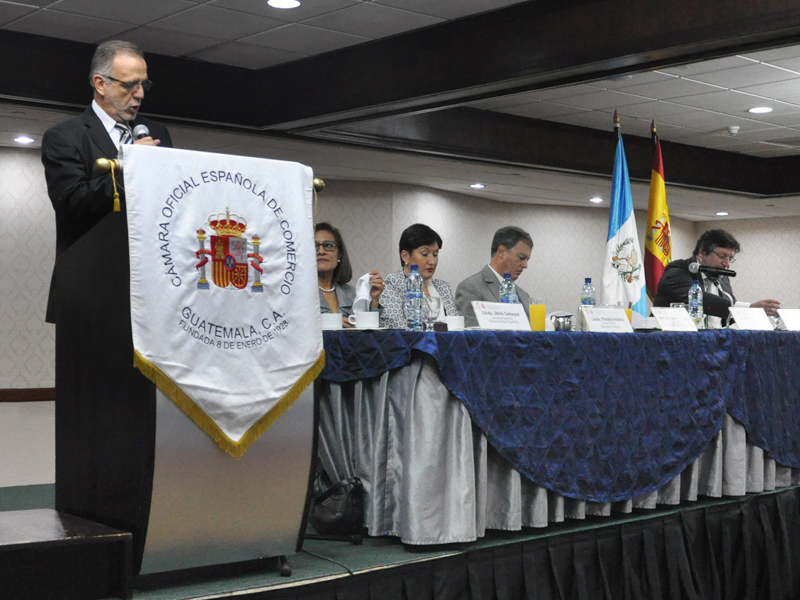 Guatemala, septiembre 02 de 2015. Que se genere entre la sociedad un ambiente diferente de respeto por la legalidad, de respeto por la institucionalidad y que se continúe fomentando la participación de los ciudadanos en todos los asuntos del país, fueron las principales reflexiones del Comisionado Iván Velásquez Gómez en un evento organizado por la Cámara Oficial de Comercio de España en Guatemala, en el cual también participó la Fiscal General, Thelma Aldana Hernández, y el embajador de España, Alfonso Portabales.