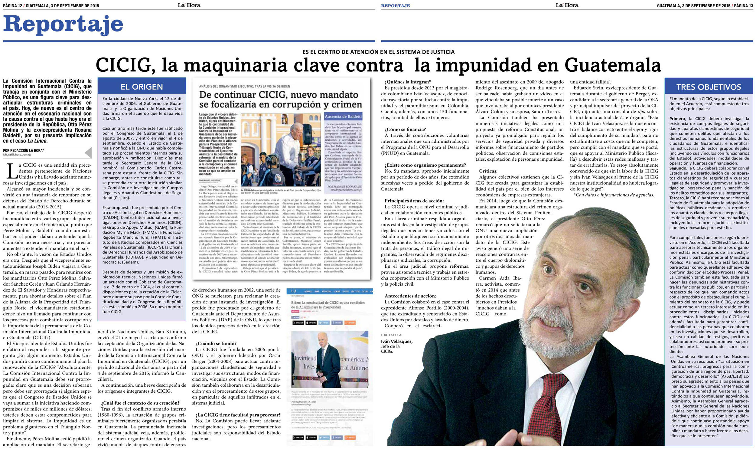 Guatemala, septiembre 04 de 2015. El vespertino La Hora publicó un reportaje sobre el trabajo en conjunto