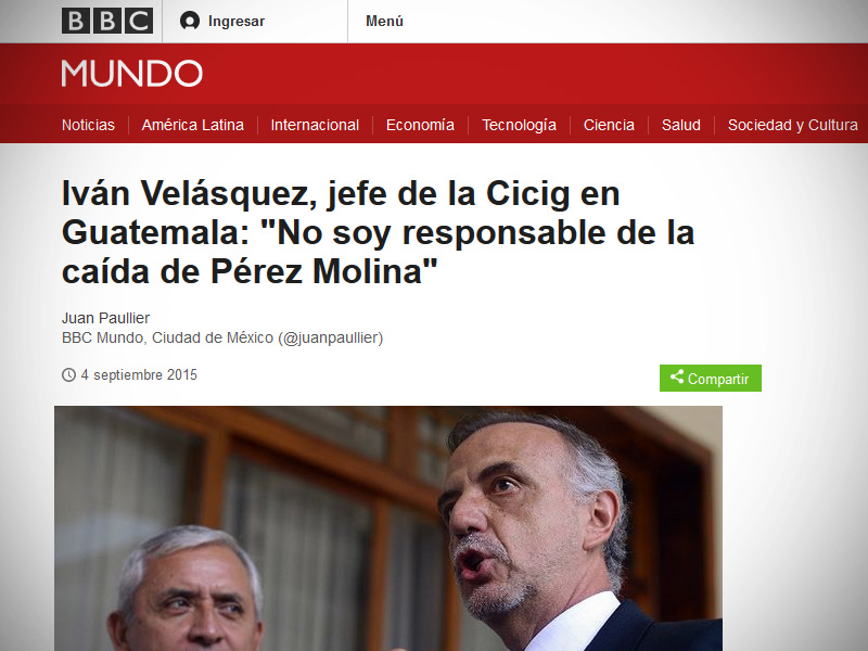 Guatemala, septiembre 04 de 2015. El Comisionado Iván Velásquez Gómez conversó recientemente con el noticiero BBC Mundo