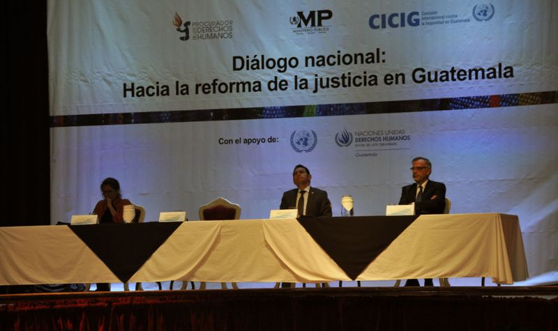 En la actividad participaron en la mesa principal el presidente de la República, Jimmy Morales, y los integrantes de la Secretaría Técnica: Fiscal General de la República, Thelma Aldana Hernández; la representante de OACNUDH, Ana María Upegui; y el Comisionado de la CICIG, Iván Velásquez Gómez.