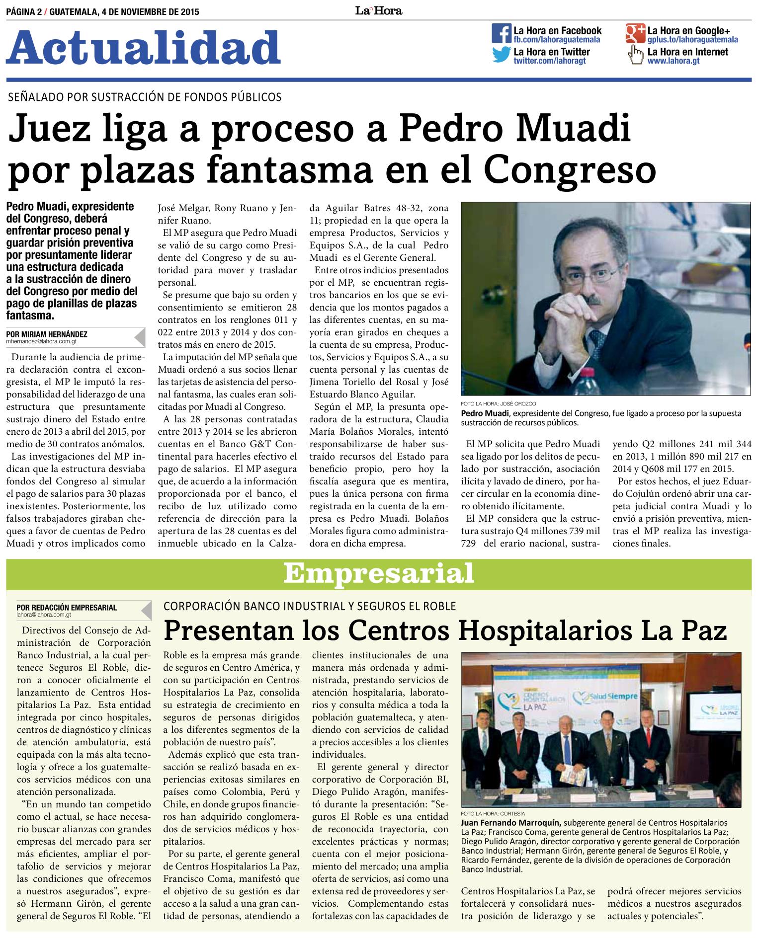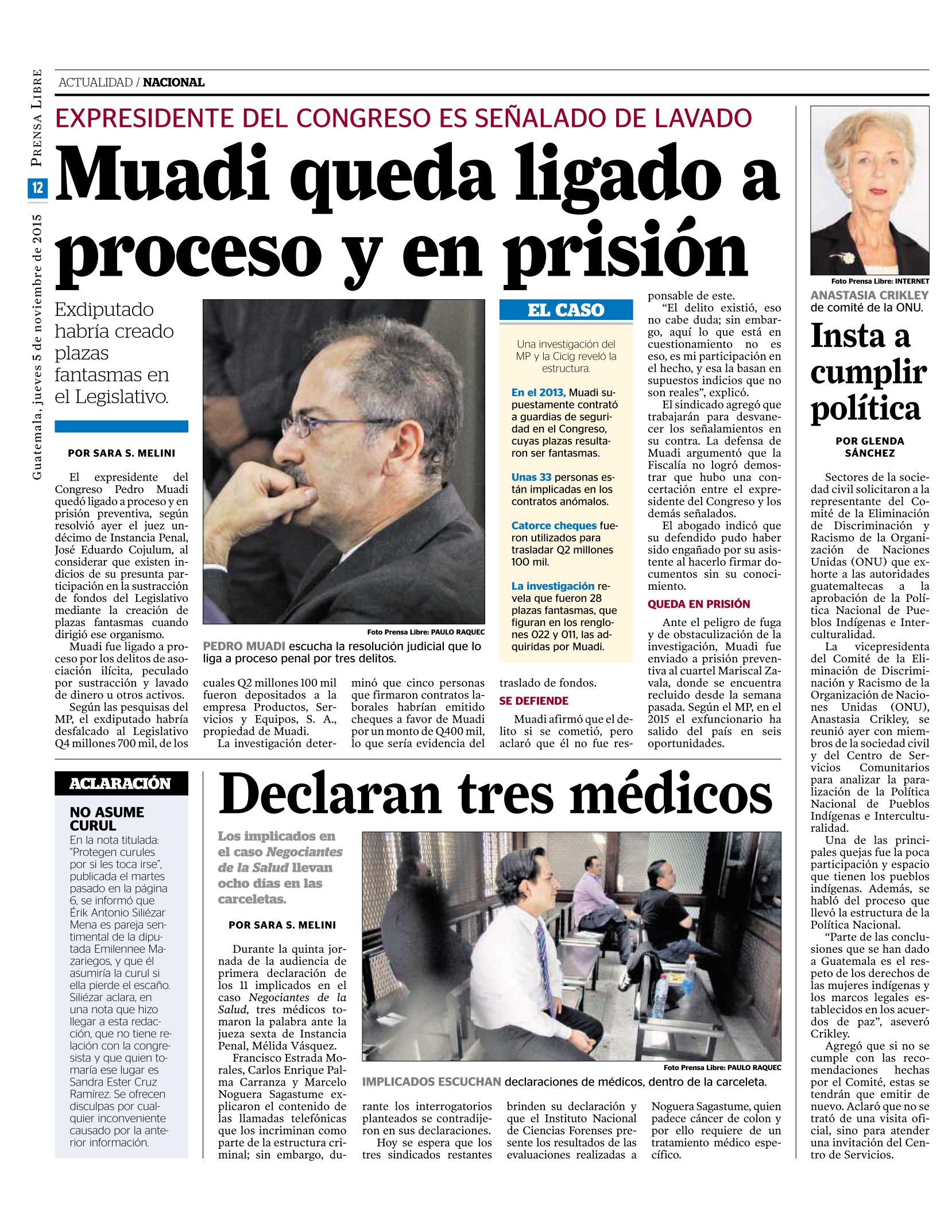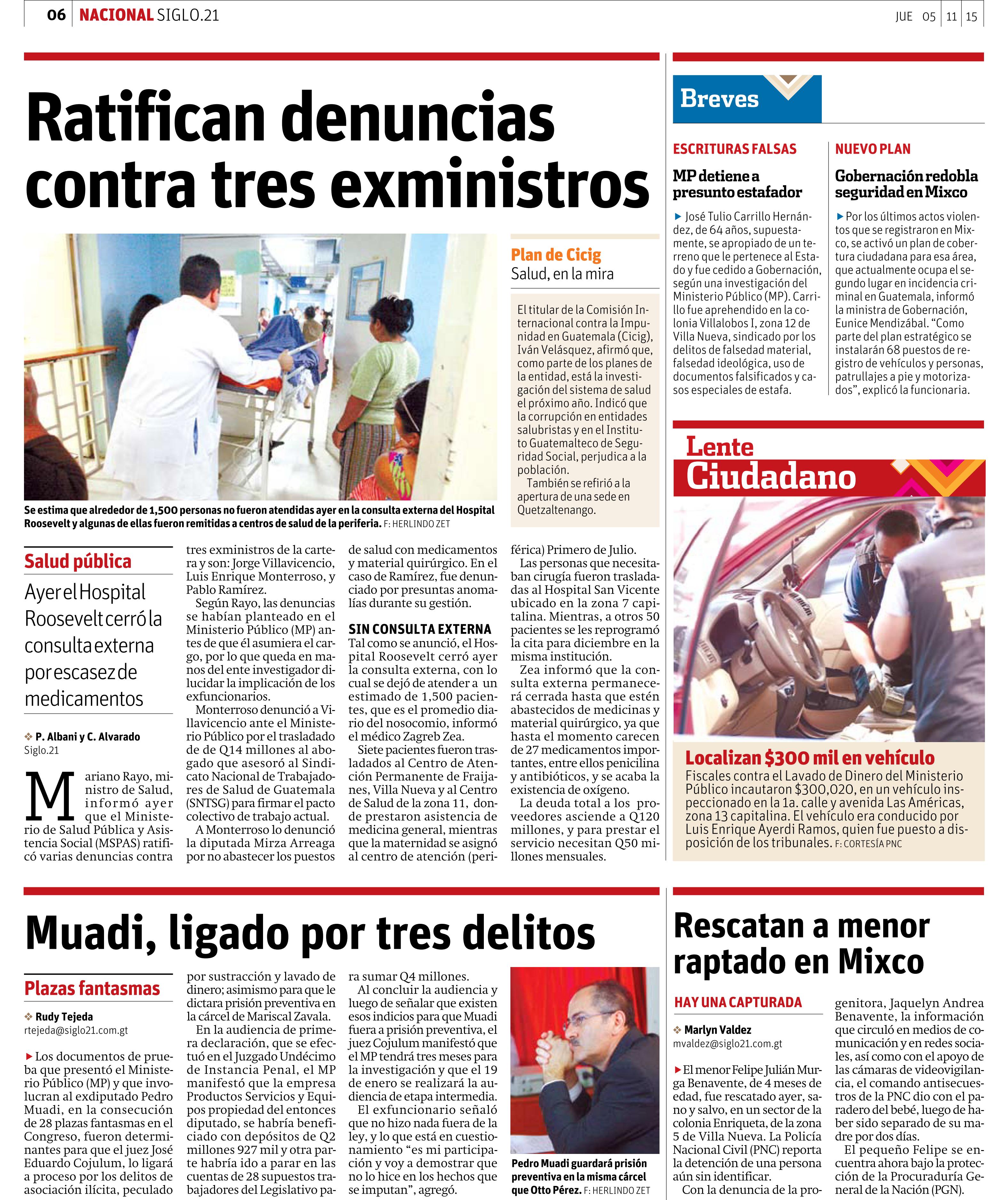 Guatemala, noviembre 05 de 2015. Los medios de comunicación resaltaron el fallo del Juzgado Undécimo de Instancia Penal, que resolvió
