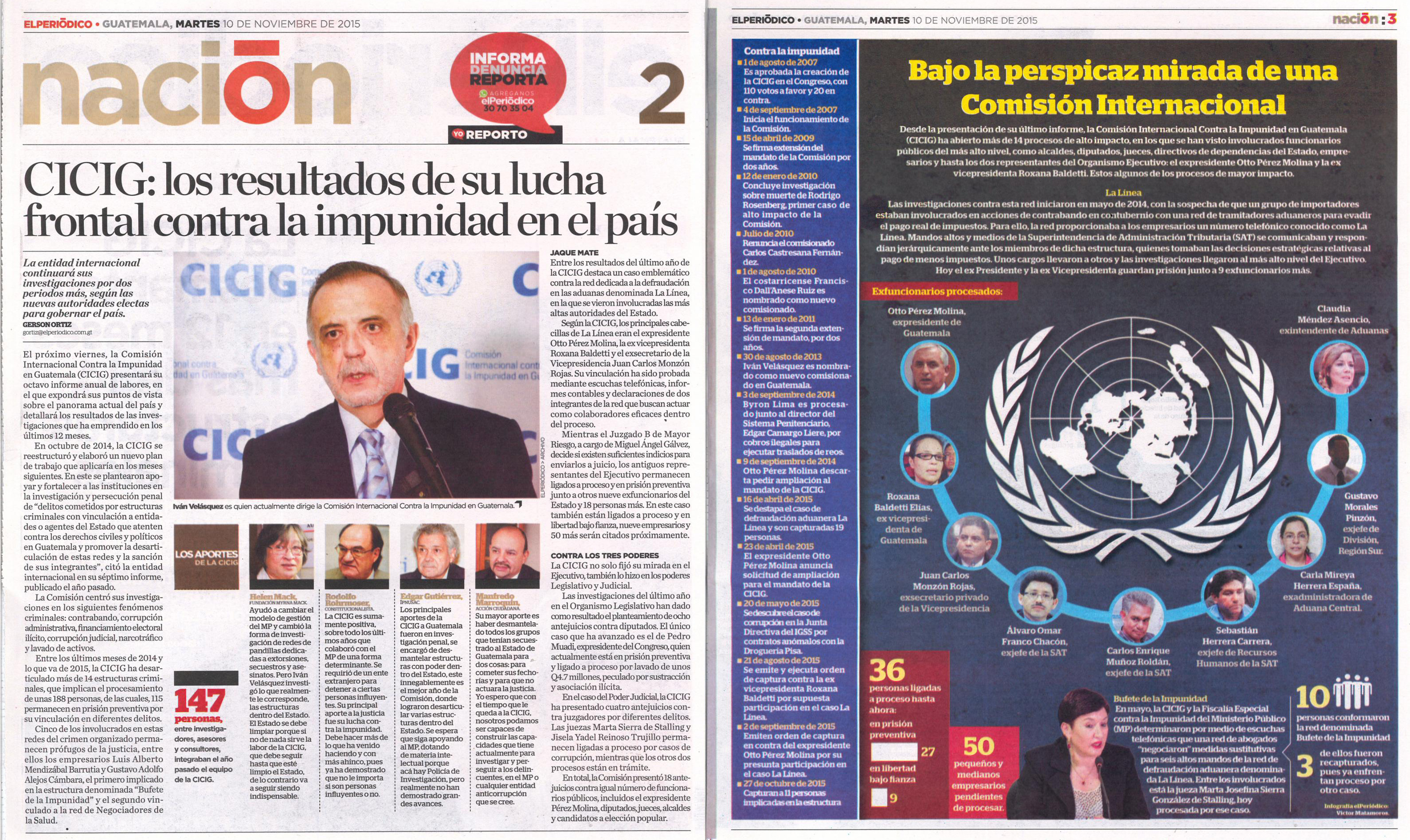 Guatemala, noviembre 10 de 2015. El diario El Periódico destacó la labor del Comisionado Iván Velásquez al frente de la CICIG en la desarticulación