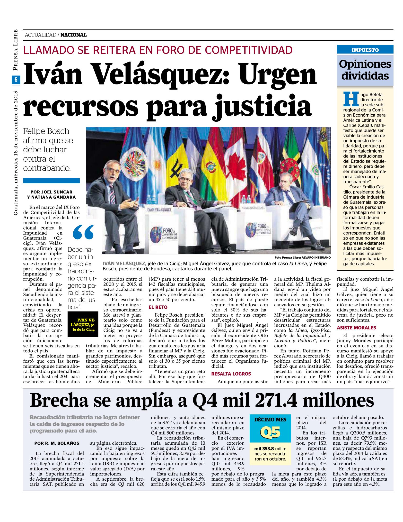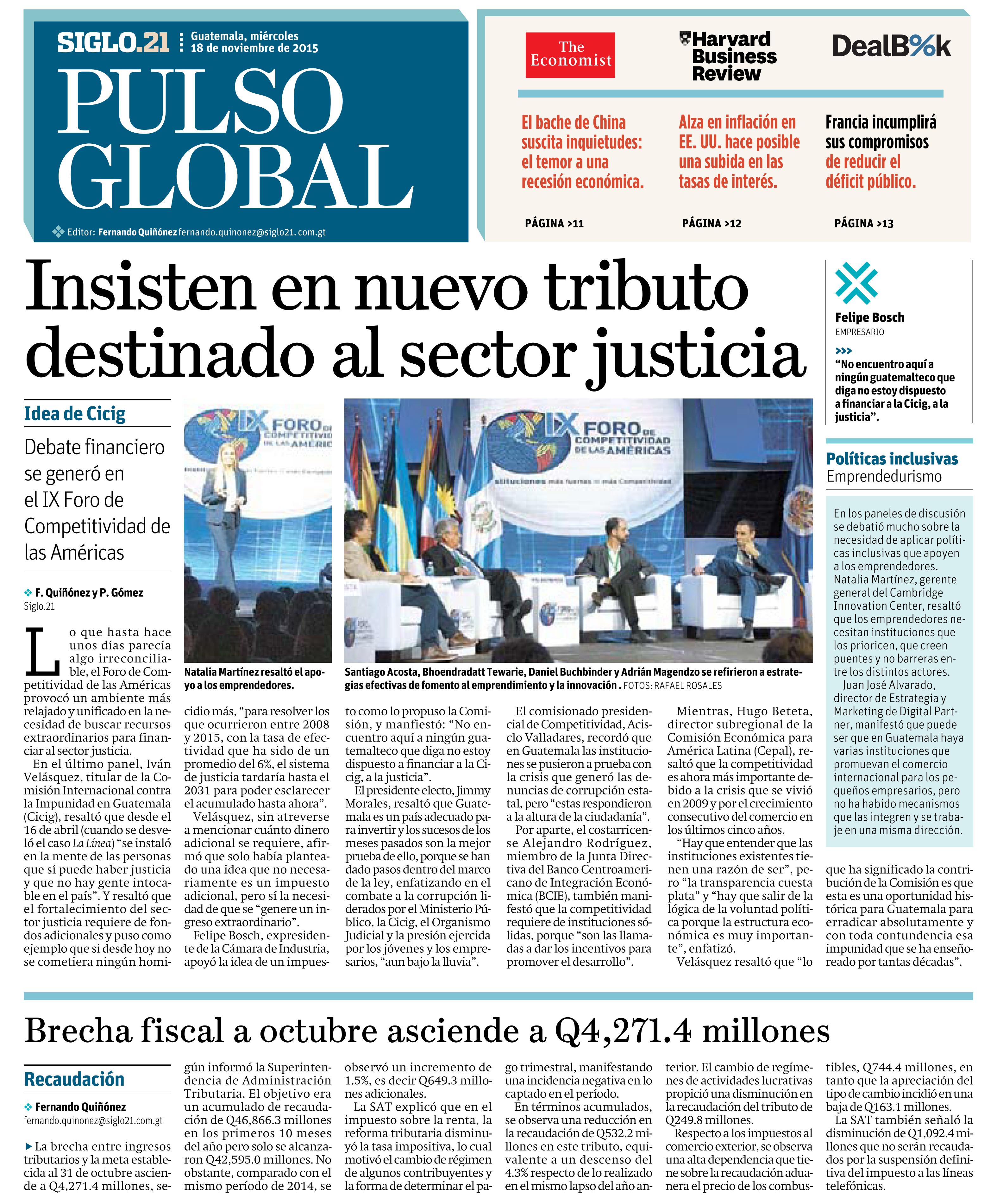 Guatemala, noviembre 18 de 2015. Los medios de comunicación destacaron la participación del Comisionado Iván Velásquez Gómez