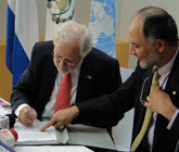 Guatemala, noviembre 19 de 2009. La Embajada del Reino de los Países Bajos hizo una importante donación a la CICIG para su funcionamiento durante los próximos 2 años. Esta donación reforzará la labor de la Comisión, la cual, según palabras del Embajador Teunis Kamper, ha mostrado resultados en investigación, legislación y colaboración. En la entrega de esta donación estuvieron presentes René Mauricio Valdés, Coordinador Residente del Sistema de Naciones Unidas en Guatemala y Carlos Castresana Fernández, Comisionado de CICIG.