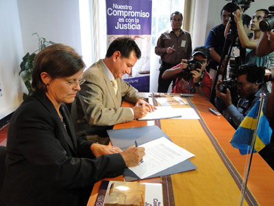 Guatemala, 2 de septiembre de 2009 – La Embajada de Suecia firmó una ampliación de su Convenio de Cooperación con la Comisión Internacional contra la Impunidad en Guatemala (CICIG) por 1.3M USD con el fin de garantizar la continuidad del trabajo de la CICIG en la nueva etapa que se inicia con la renovación del mandato.